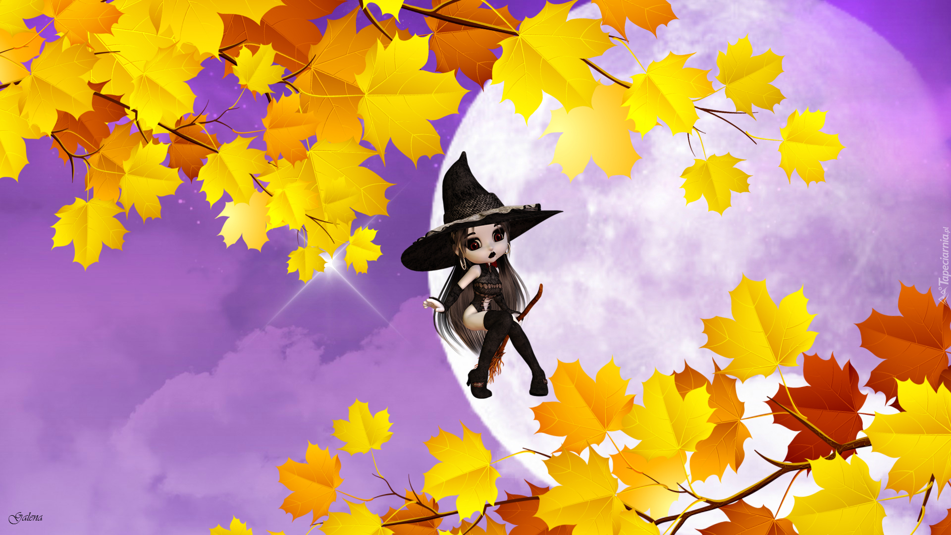Edytor tapety: Gałęzie, Księżyc, Wiedźma, Halloween, Grafika