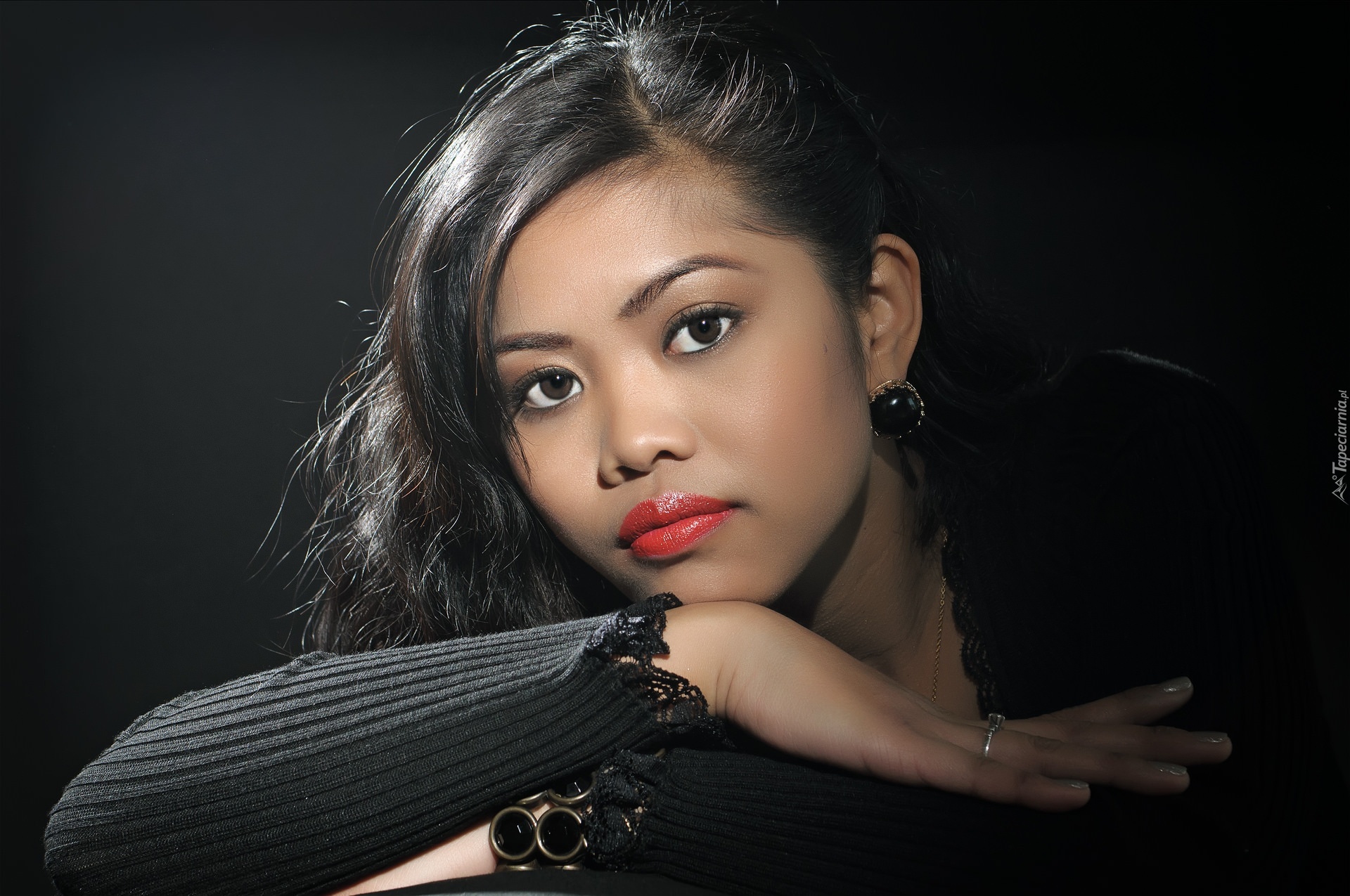 Edytor tapety: Kobieta, Czarnulka, Biżuteria, Czarny, Sweter