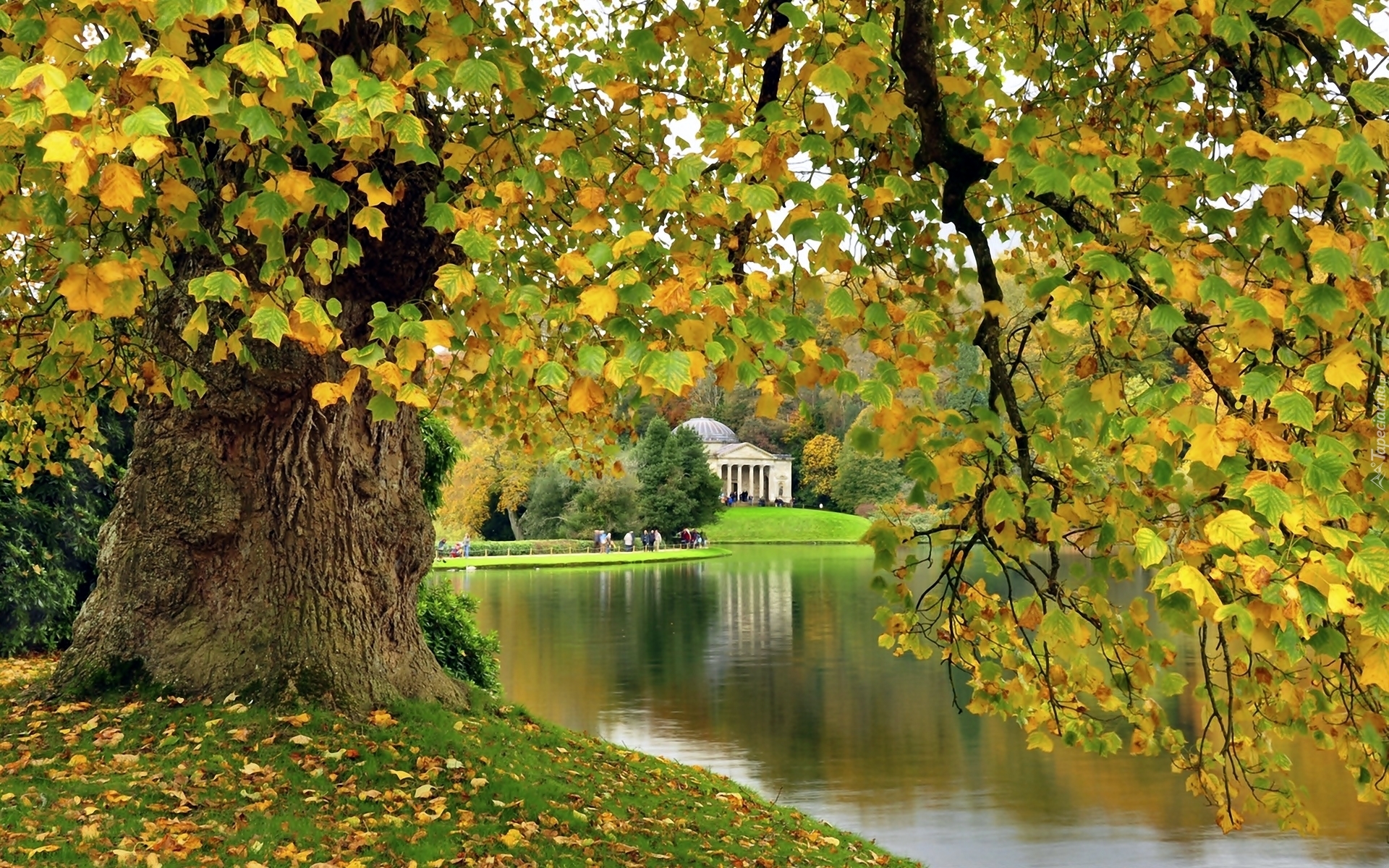 Edytor tapety: Park, Jezioro, Drzewa, Rezydencja, Stourhead, Anglia, Jesień