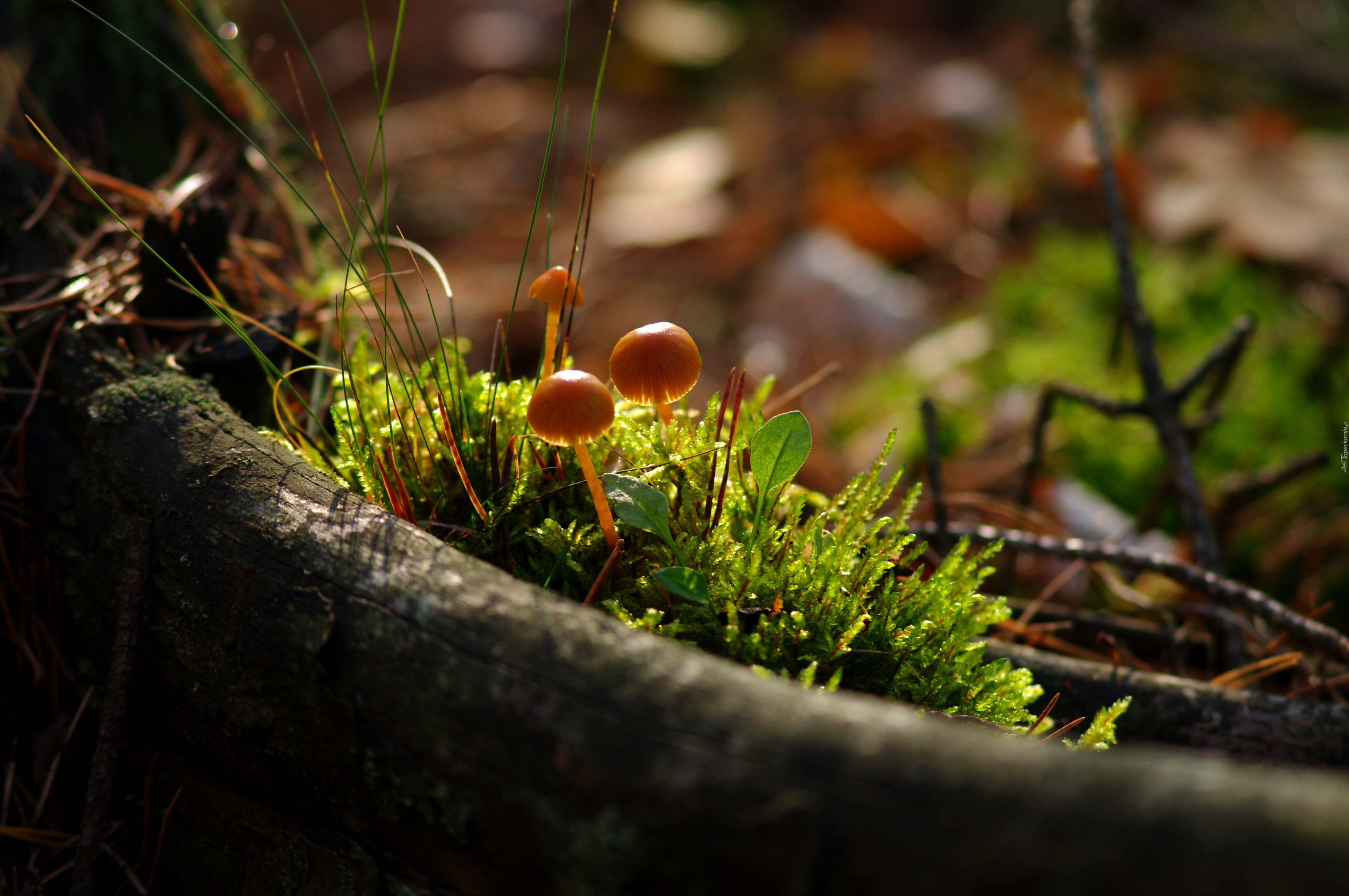 Edytor tapety: Kłoda, Mech, Grzybki, Światło