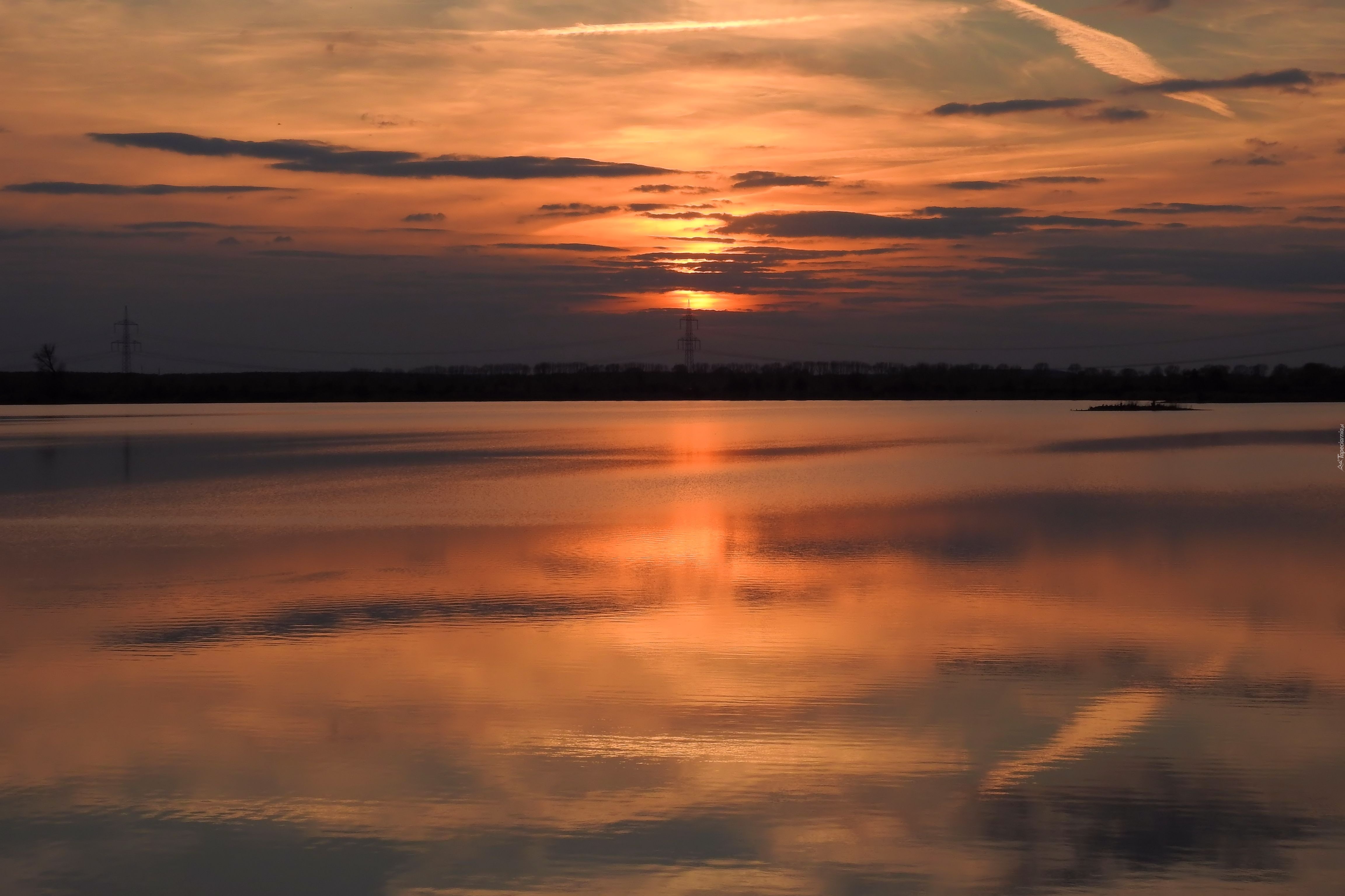 Edytor tapety: Zachód, Słońca, Jezioro, Odbicie, Niebo, Chmury