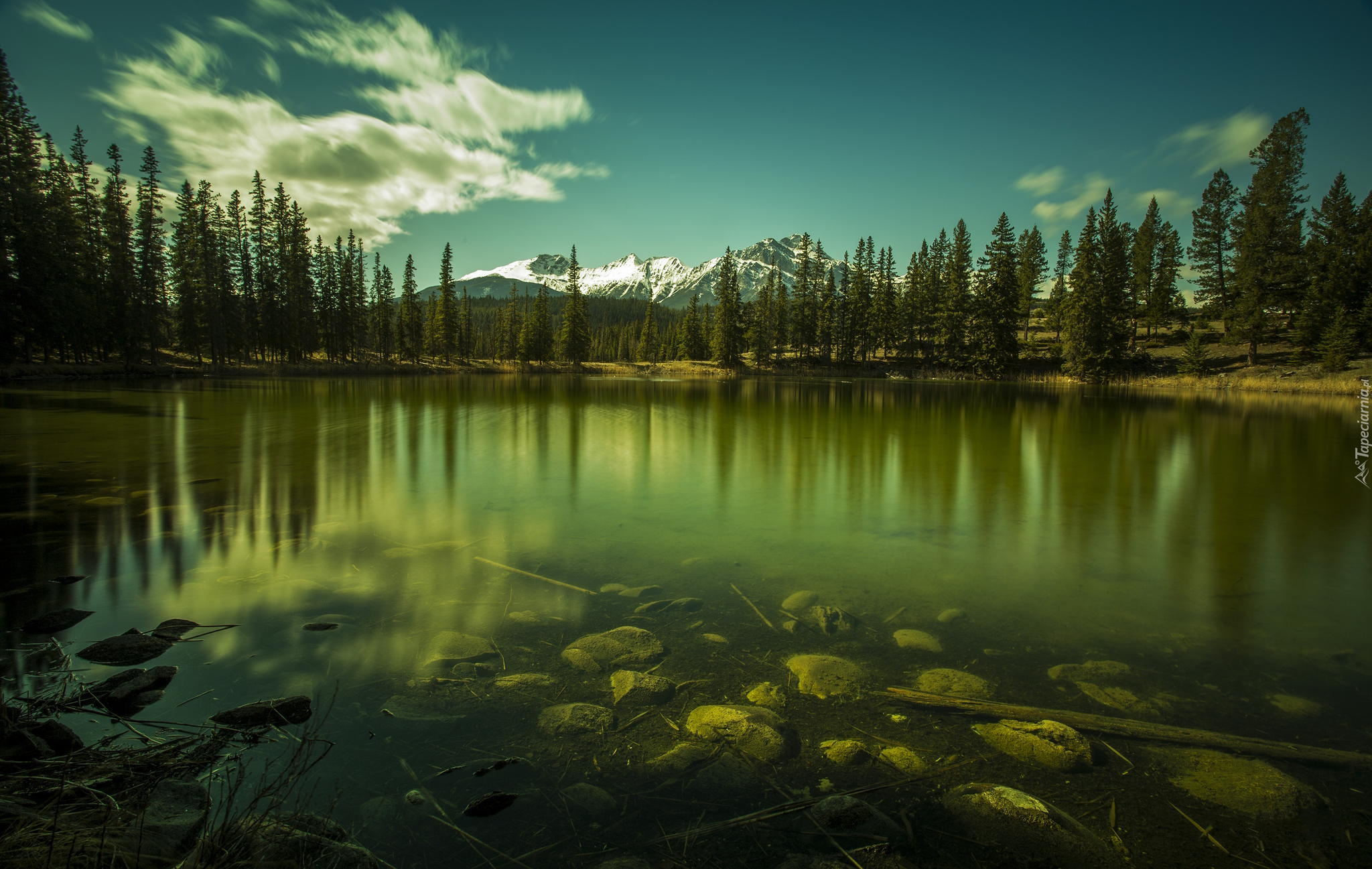 Edytor tapety: Jezioro, Kamienie, Góry, Las, Drzewa