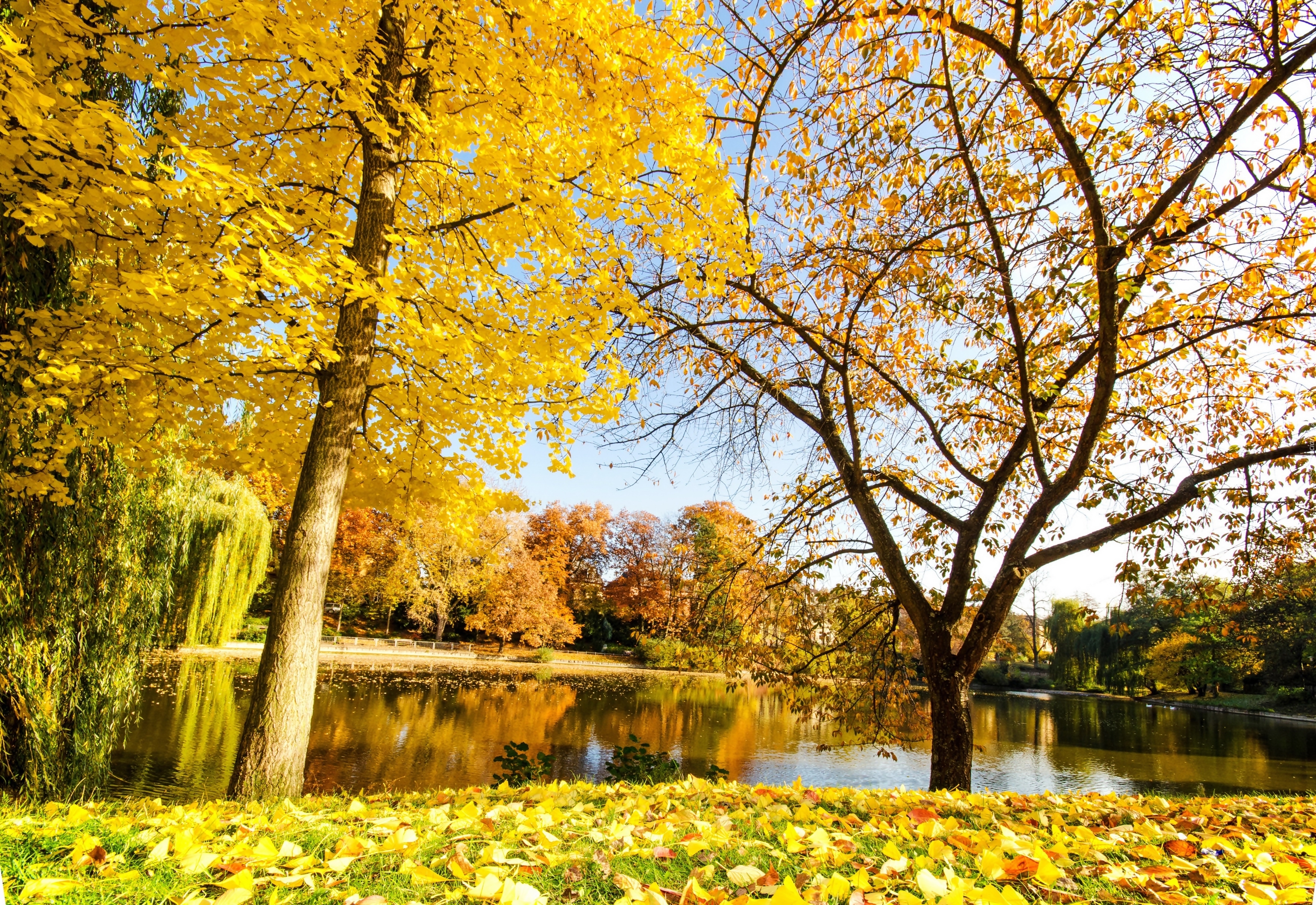 Edytor tapety: Park, Staw, Kaczki, Drzewa, Liście, Jesień