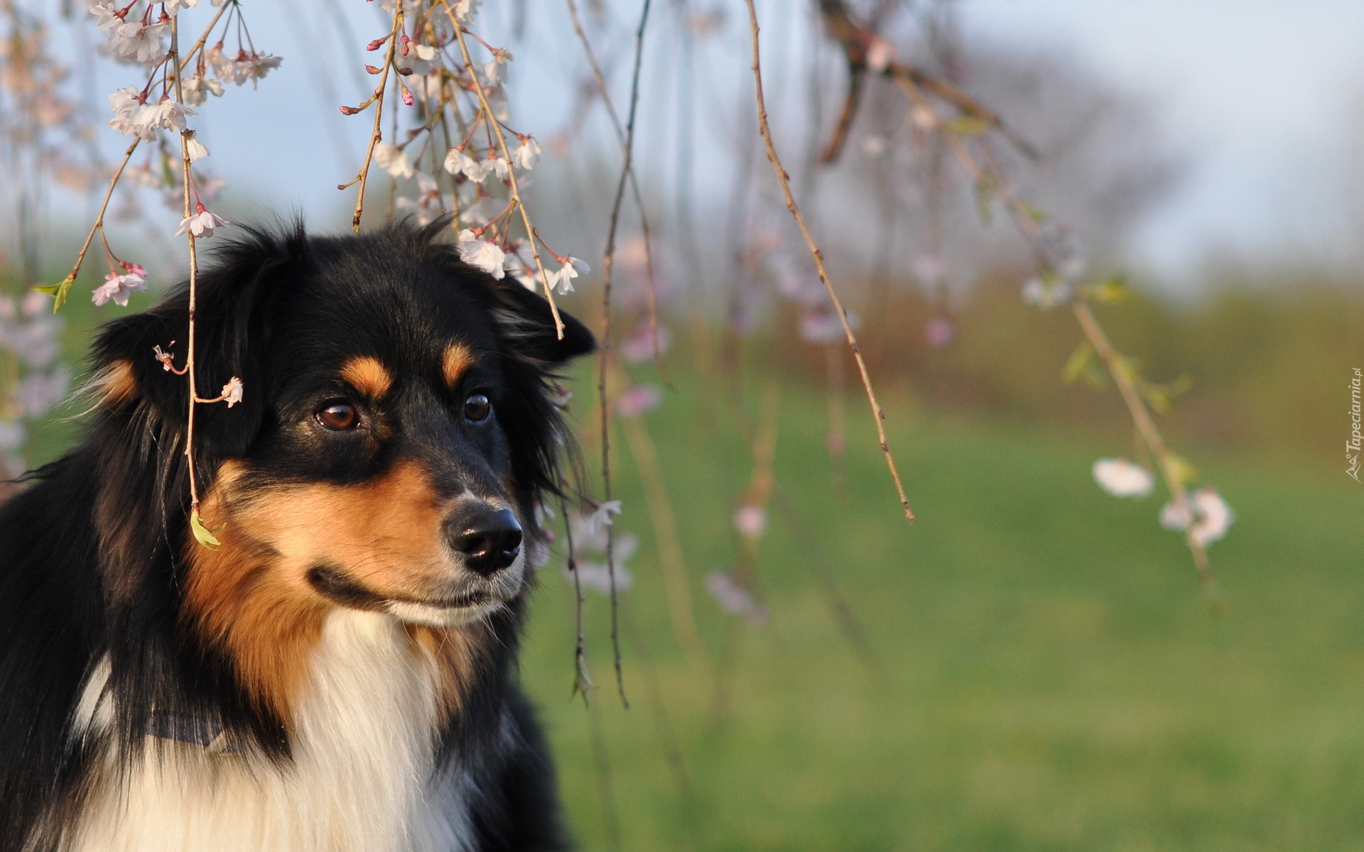 Edytor tapety: Pies, Kwitnące, Gałązki
