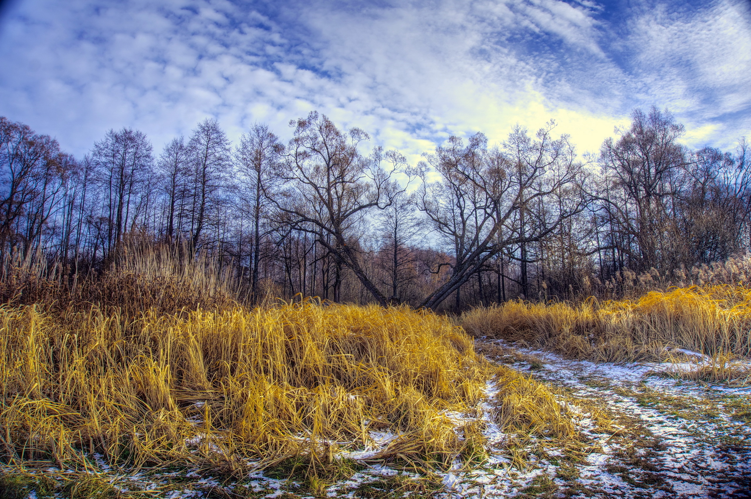 Edytor tapety: Polna, Droga, Bezlistne, Drzewa, Pożółkła, Trawa