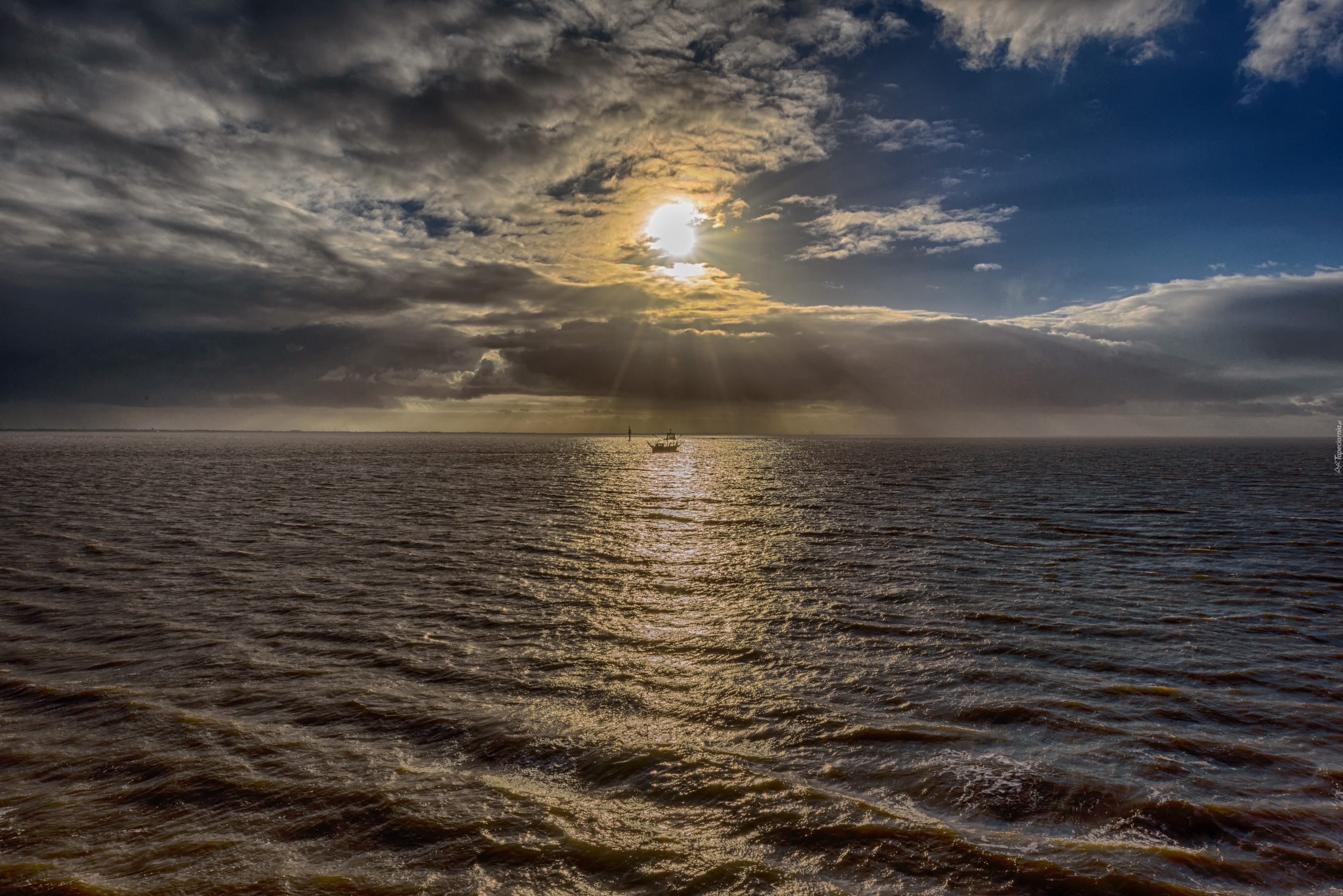 Edytor tapety: Ocean, Fale, Słońce, Statek