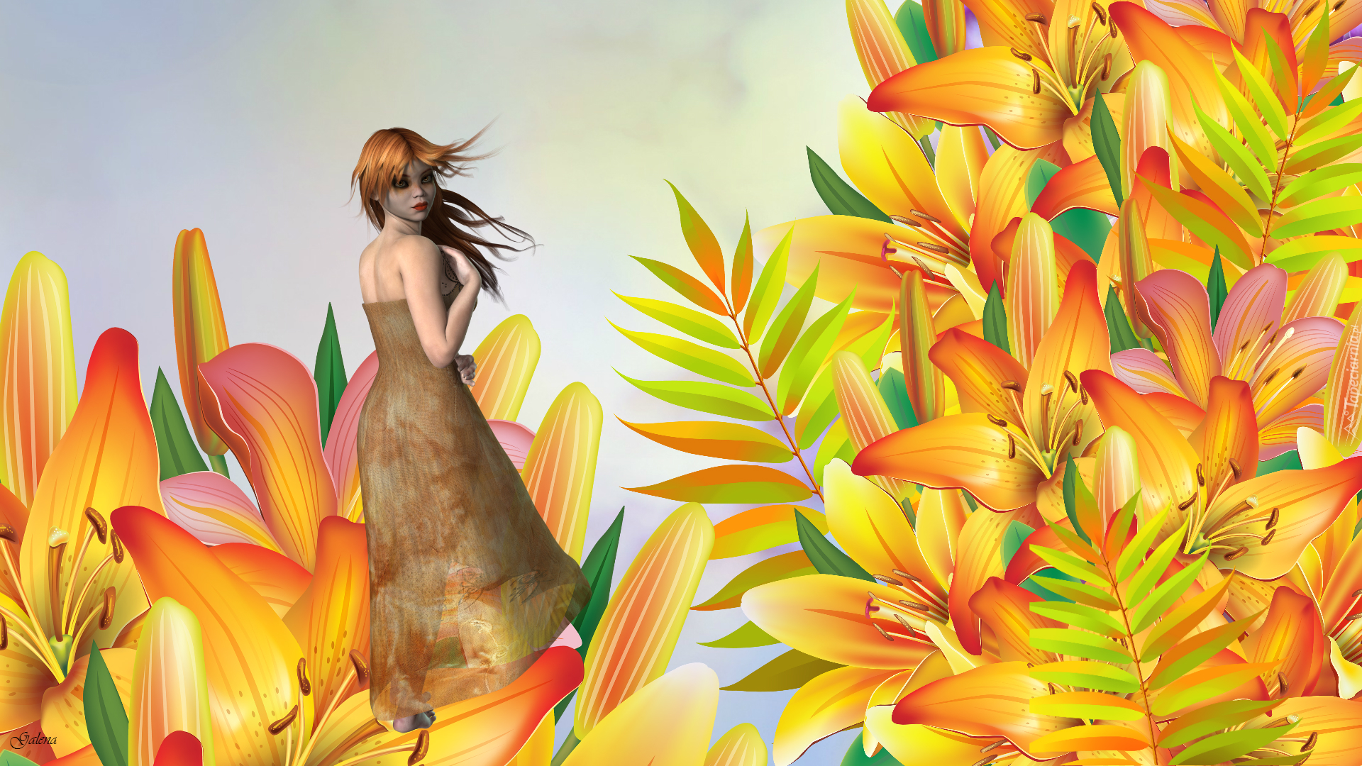 Edytor tapety: Lilie, Dziewczyna, Grafika
