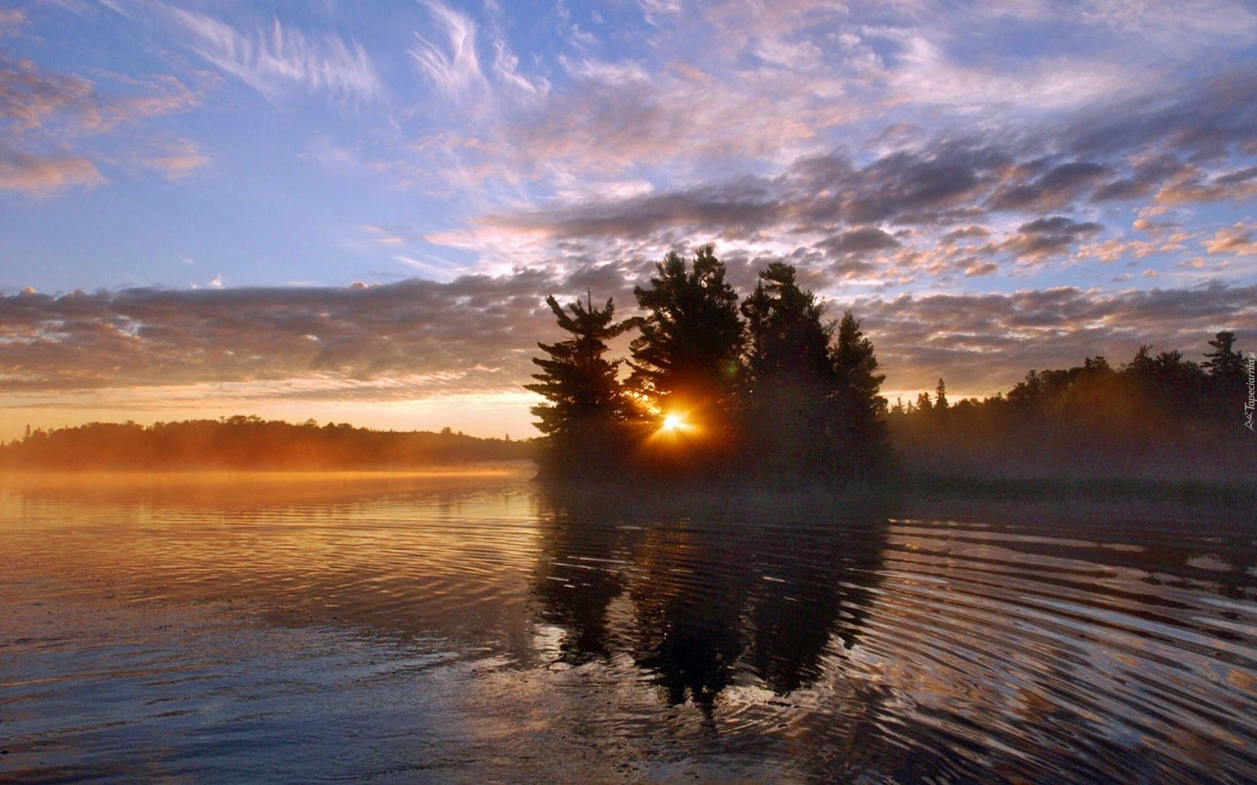 Edytor tapety: Jezioro, Las, Zachód słońca, Chmury
