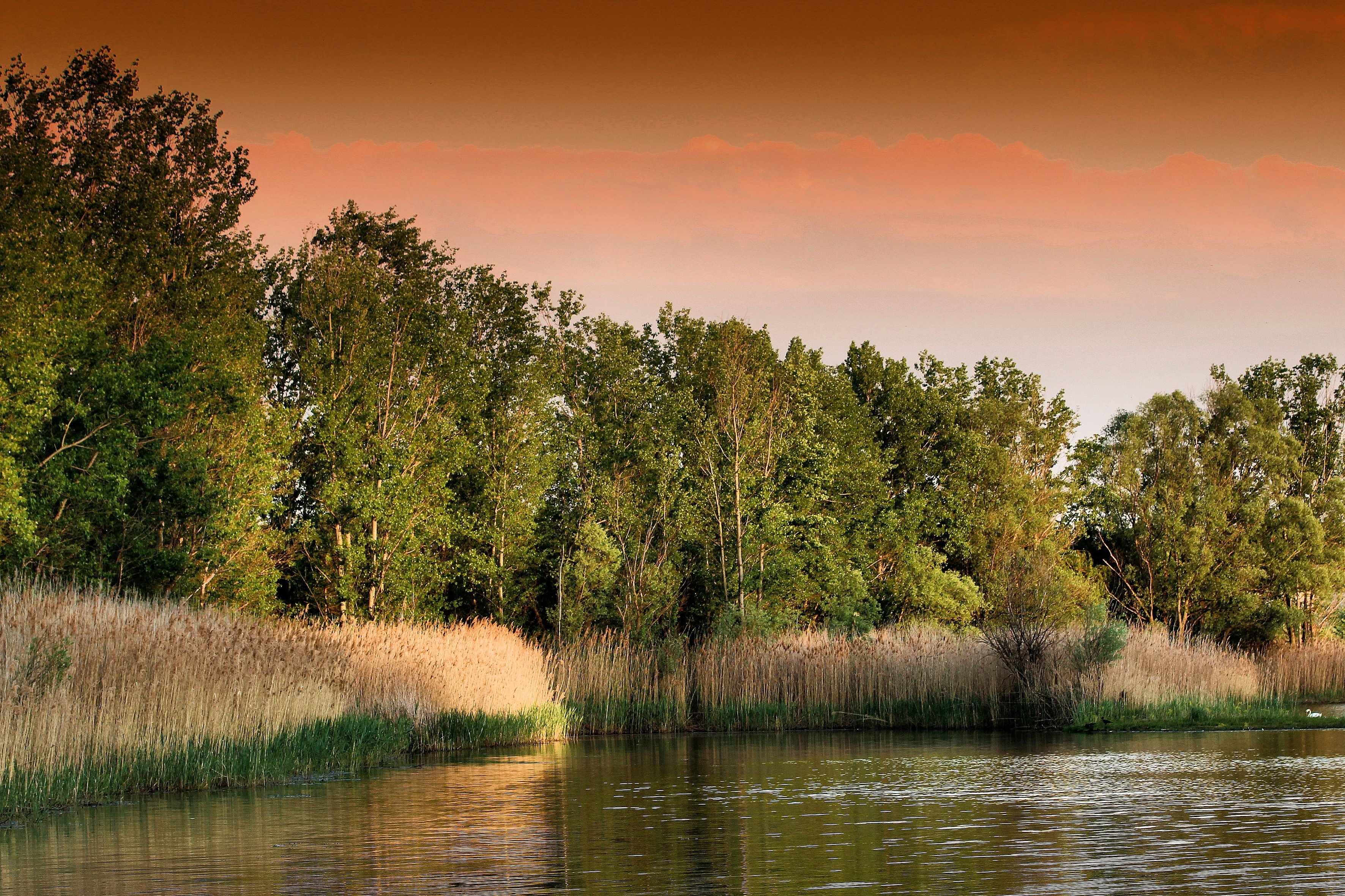 Edytor tapety: Jezioro, Trzciny, Drzewa
