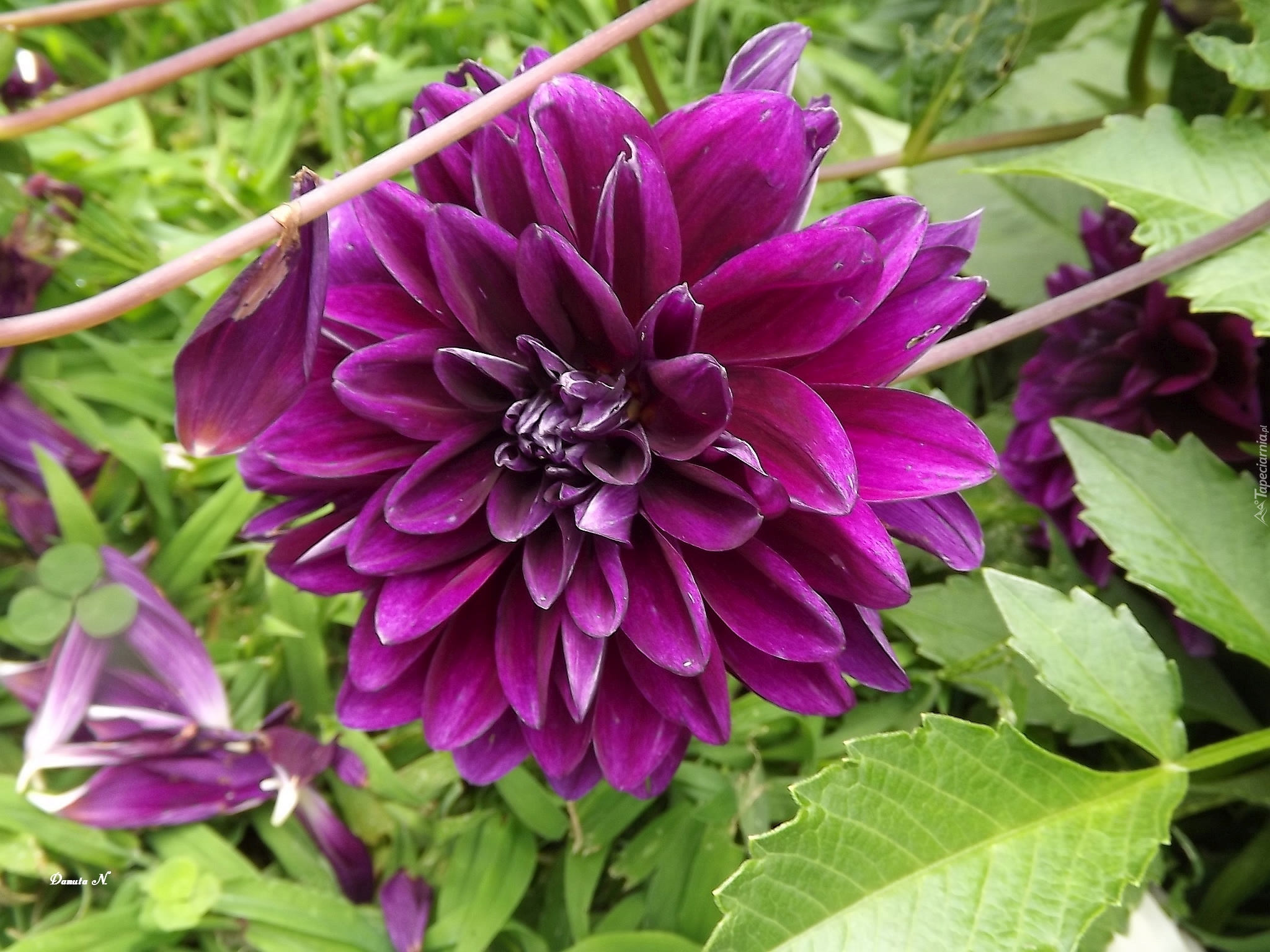 Edytor tapety: Kwiat, Dalia, Fioletowa, Liście