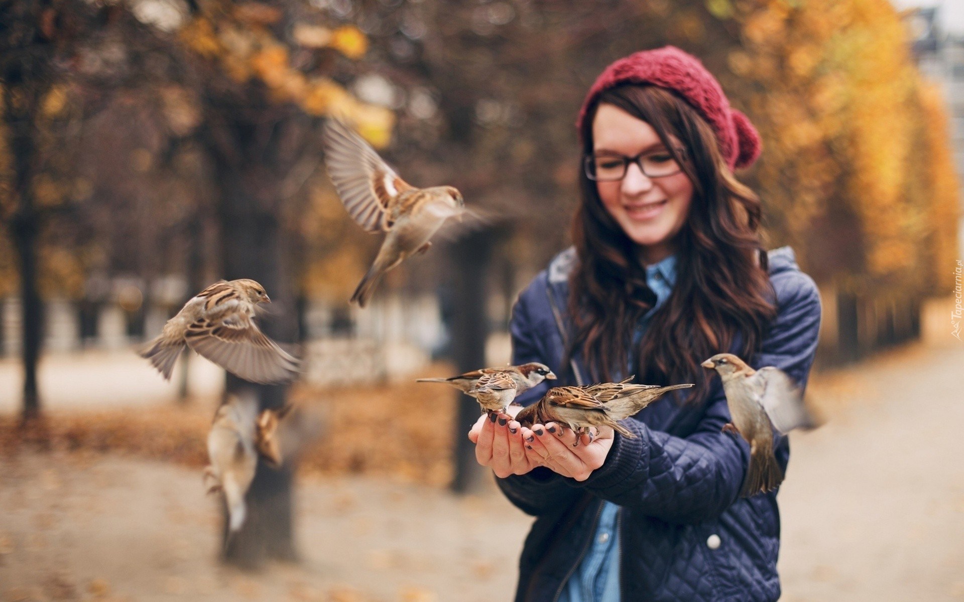 Edytor tapety: Ptaki, Wróbel, Dziewczyna