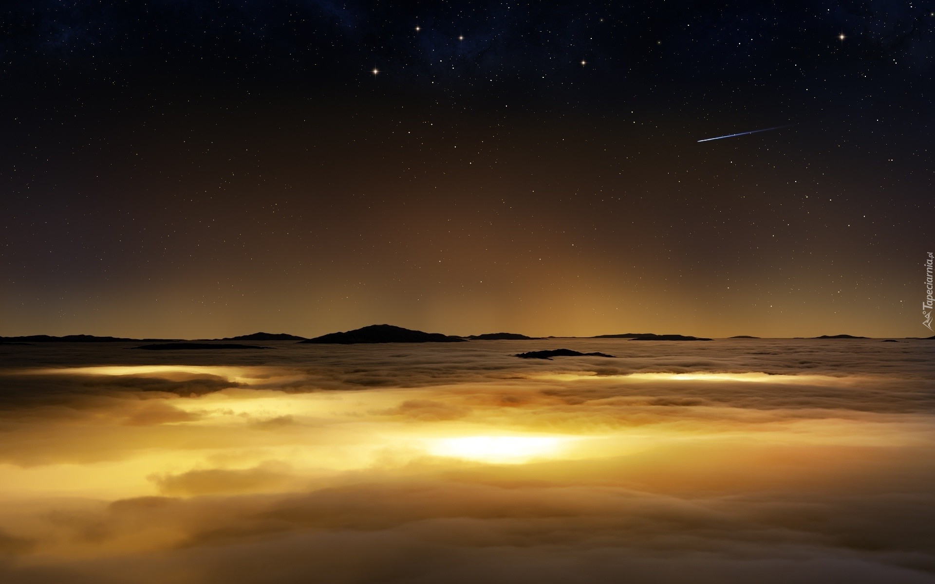 Edytor tapety: Chmury, Przebijające Światło, Noc, Niebo, Rozgwieżdżone