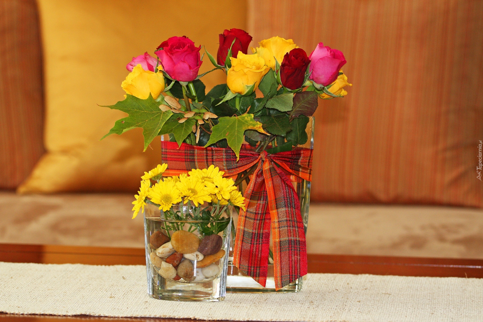 Edytor tapety: Kwiaty, róże kolorowe, wazon