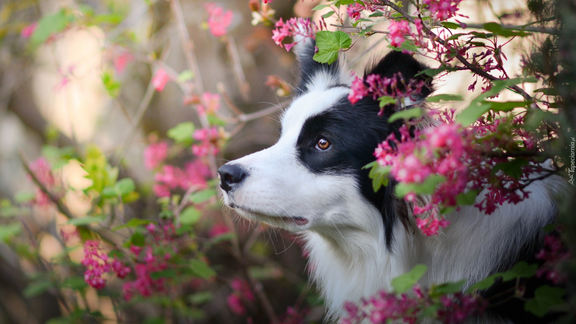 Edytor tapety: Pies, Border collie, Krzewy, Kwiaty