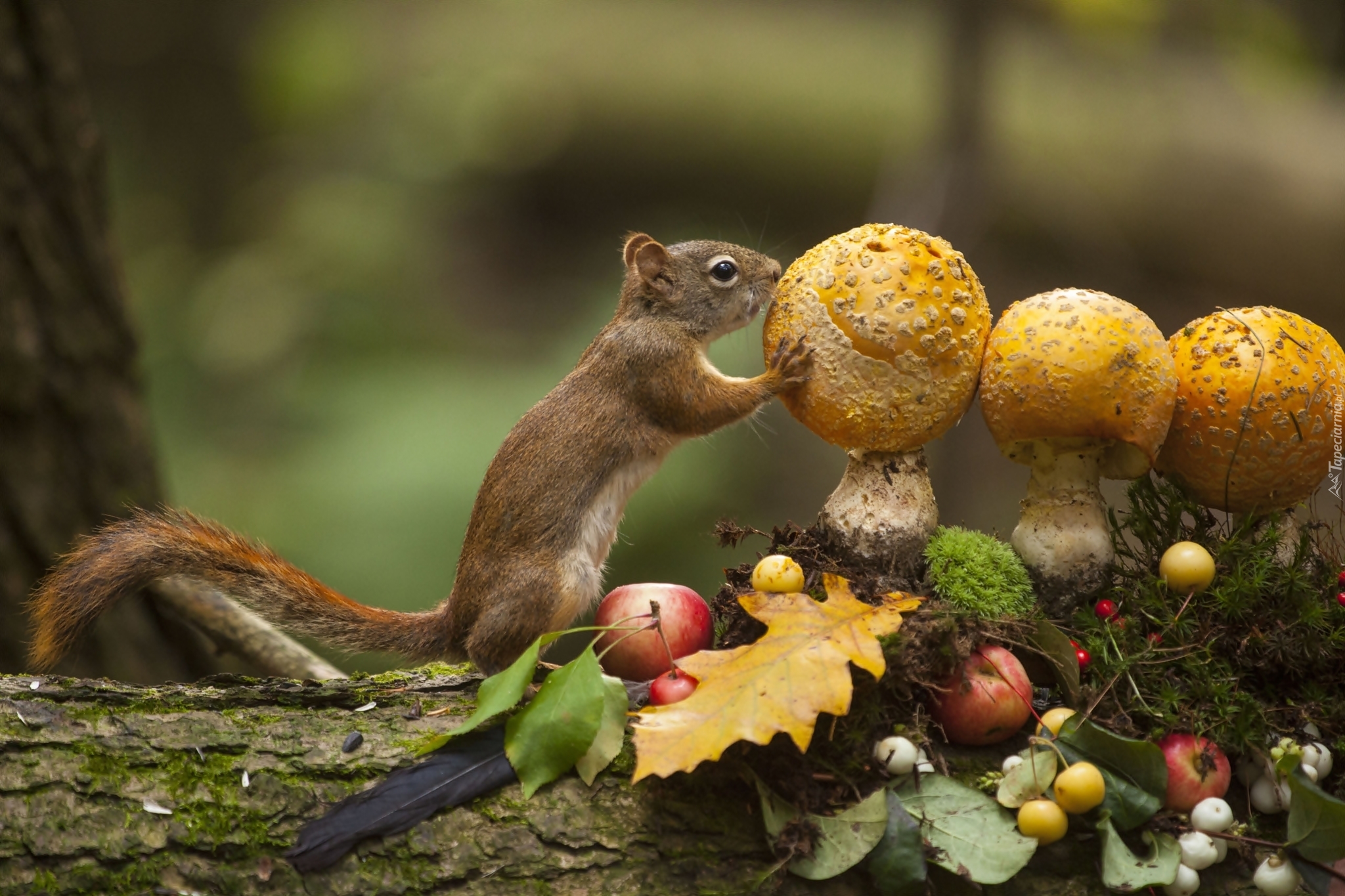 Edytor tapety: Wiewiórka, Drzewo, Jesienne, Zapasy, Muchomory, Las