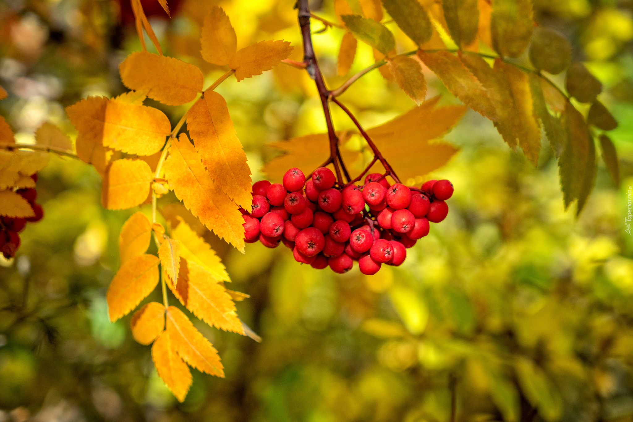 Edytor tapety: Jarzębina, Jesień, Liście