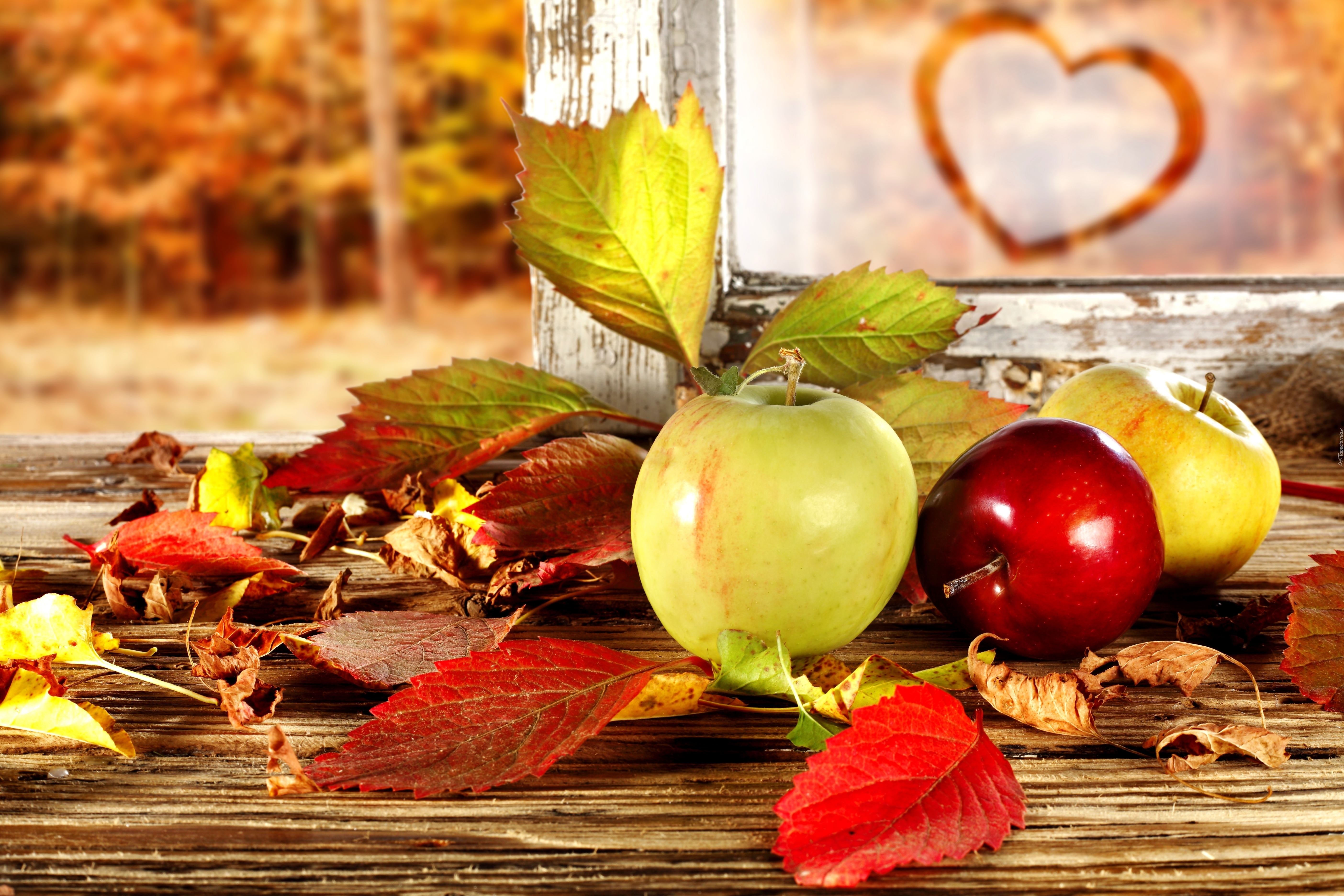 Edytor tapety: Jabłka, Liście, Okno, Parapet, Kompozycja, Jesienna