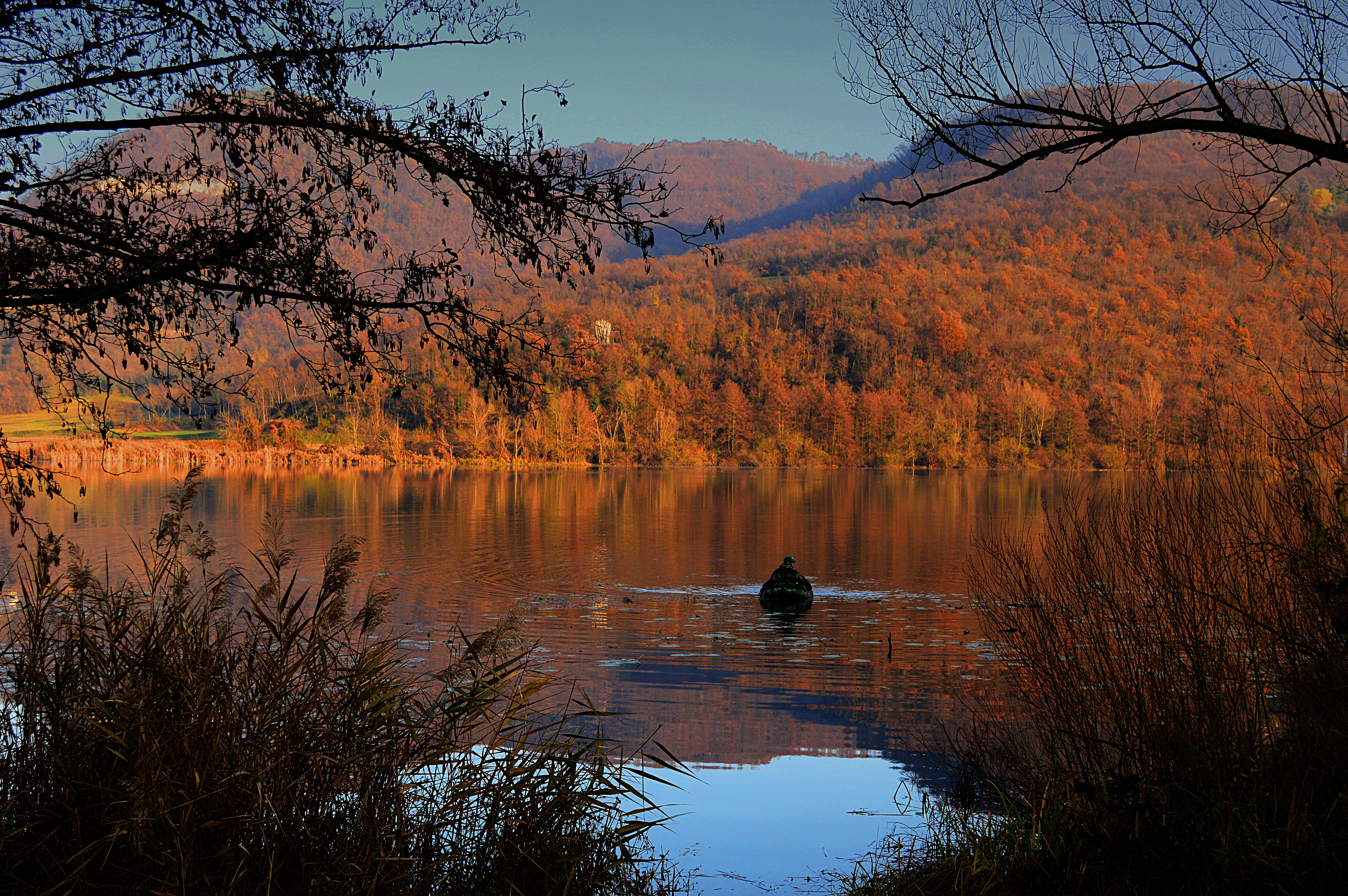Edytor tapety: Jezioro, Jesień, Ponton, Krzewy