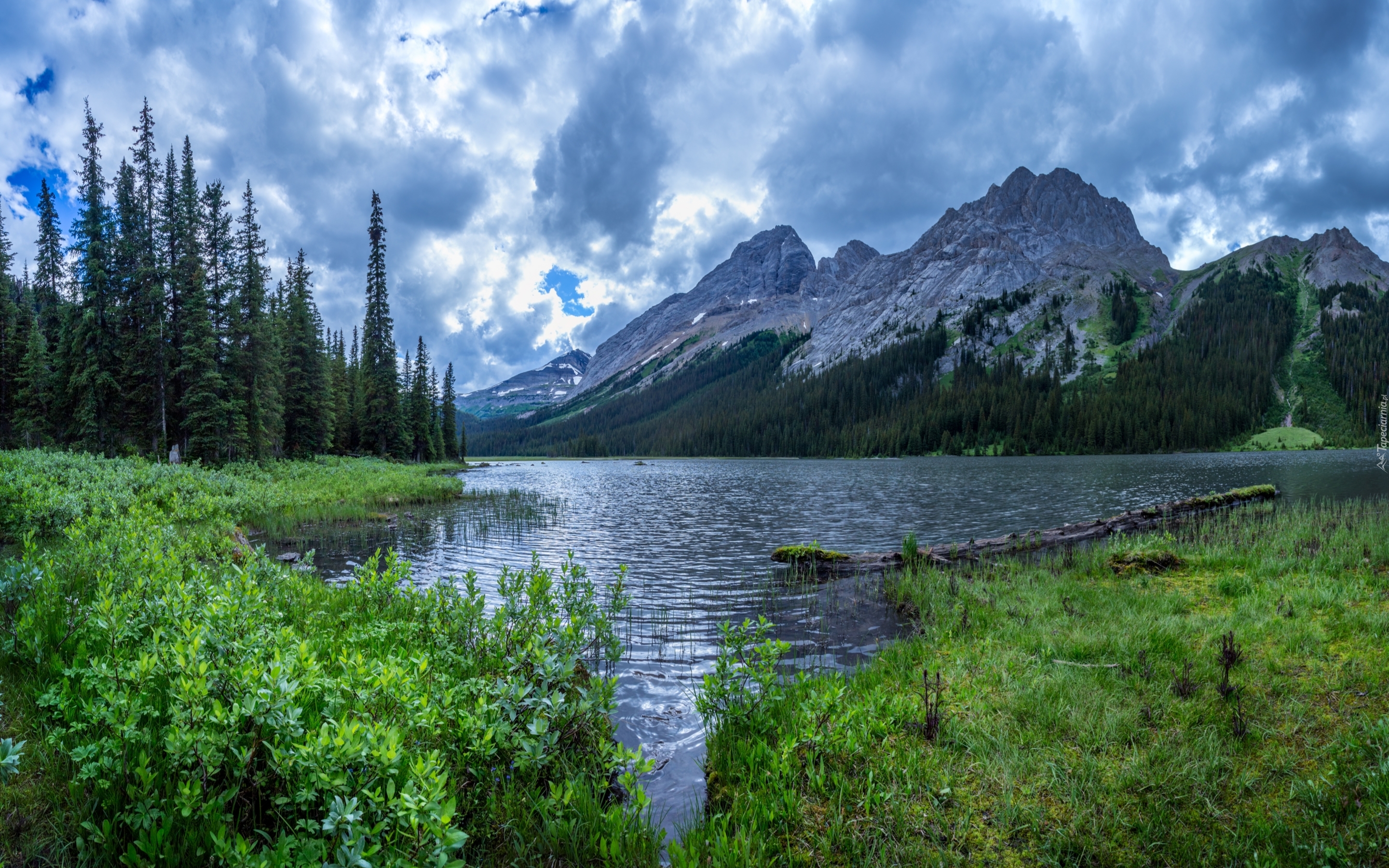 Edytor tapety: Góry, Jezioro, Drzewa, Chmury, Roślinność