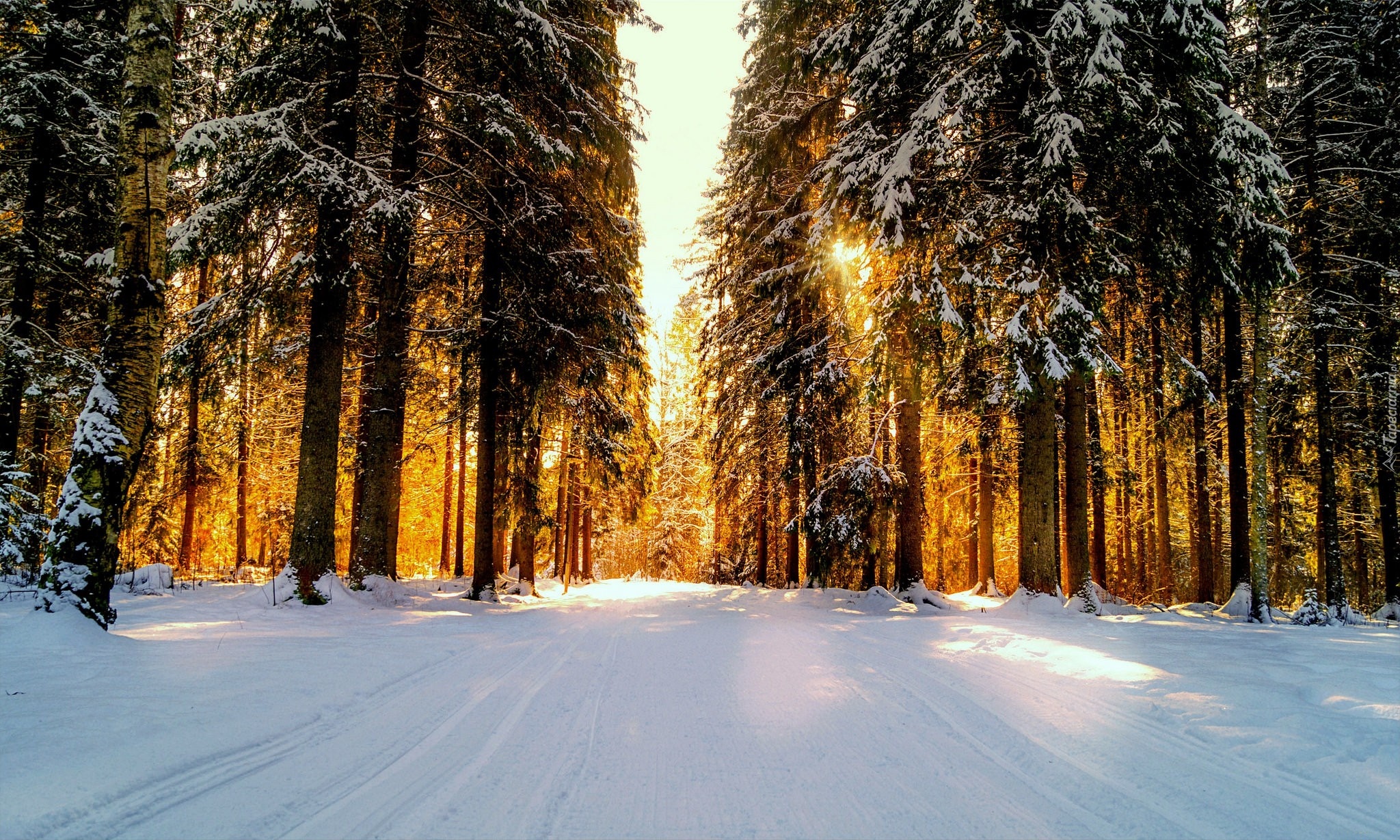 Edytor tapety: Zima, Las Droga, Przebijające światło