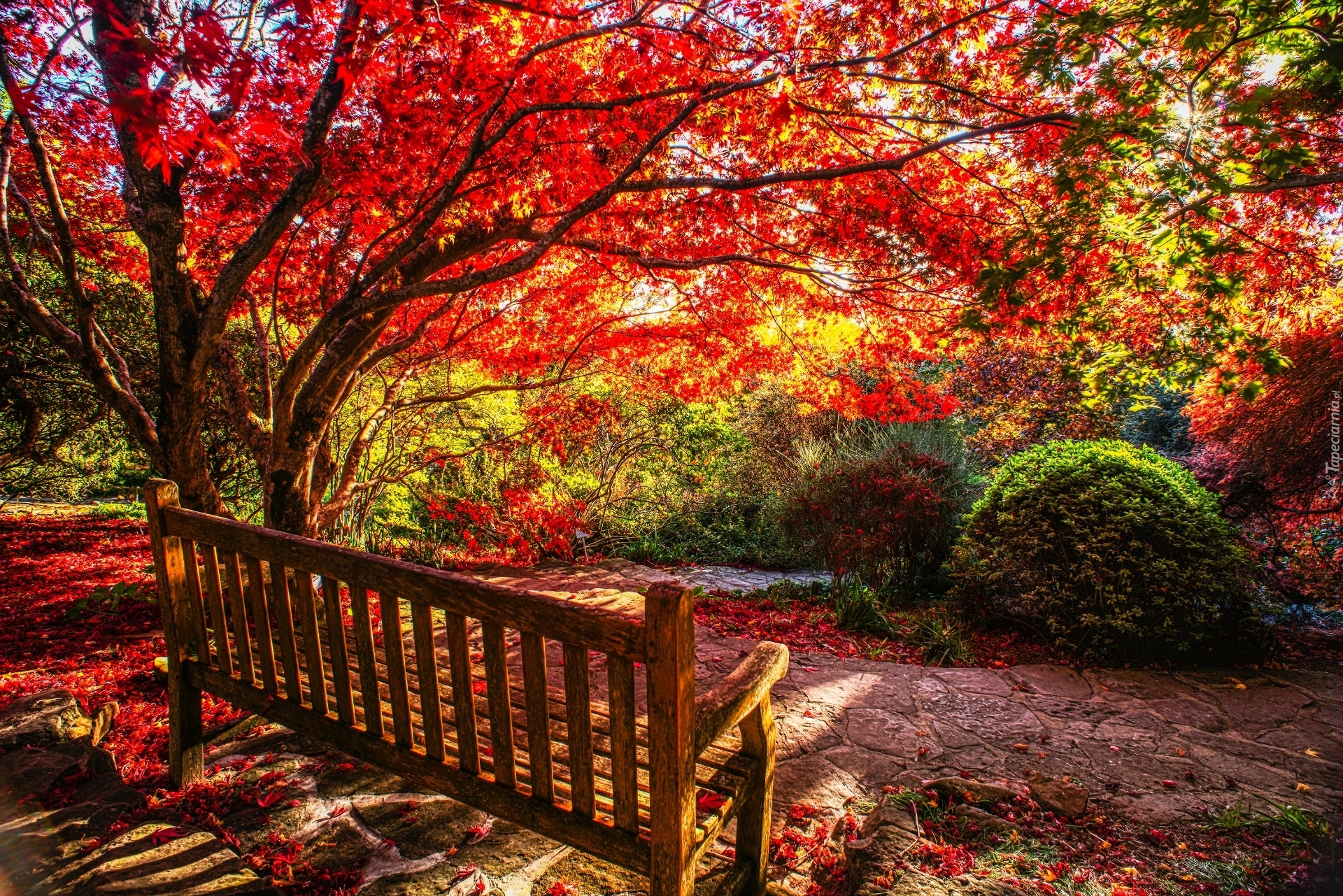 Edytor tapety: Park, Jesień, Drzewa, Krzewy, Ławeczka