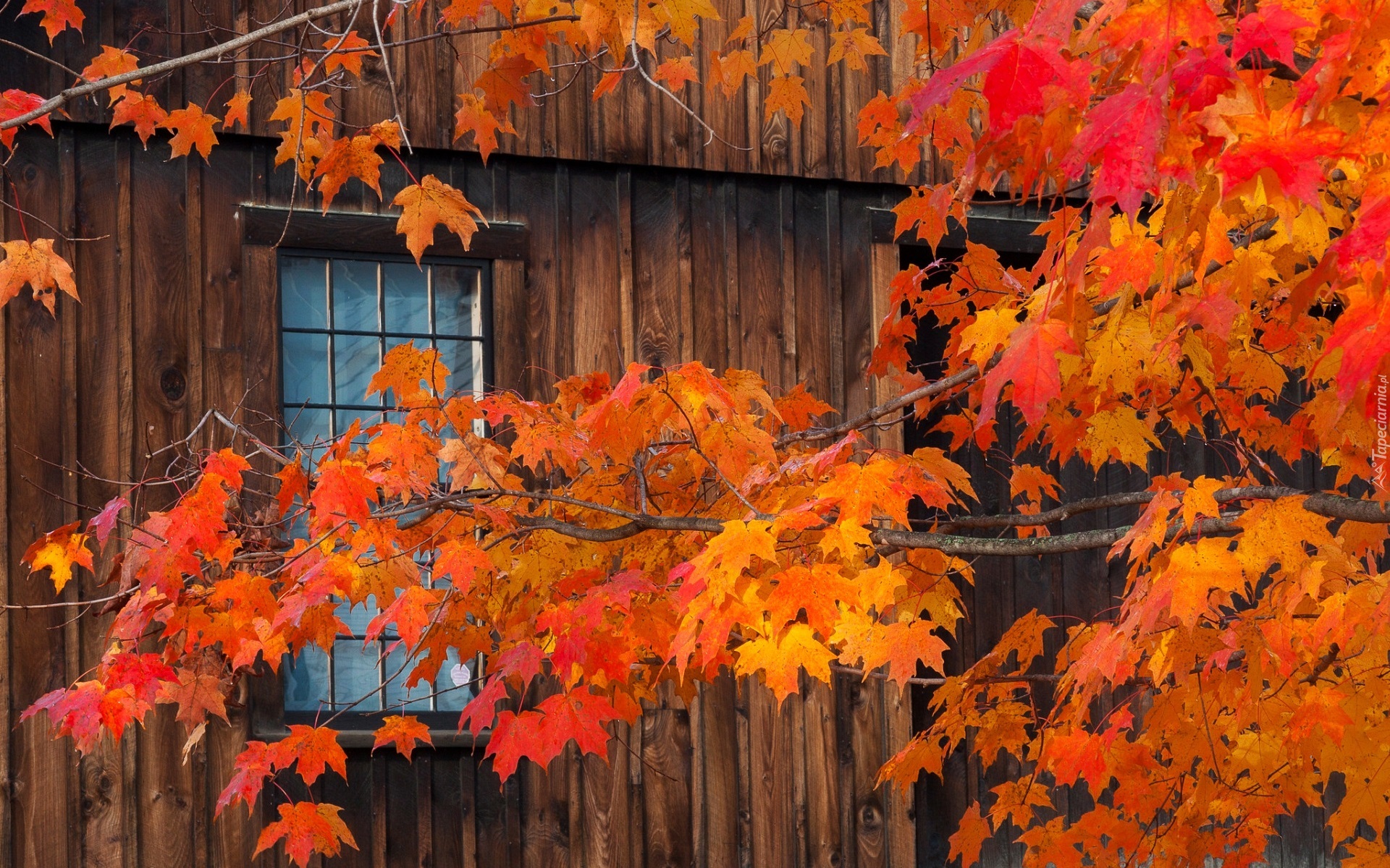 Edytor tapety: Drzewo, Klon, Gałęzie, Liście, Okno