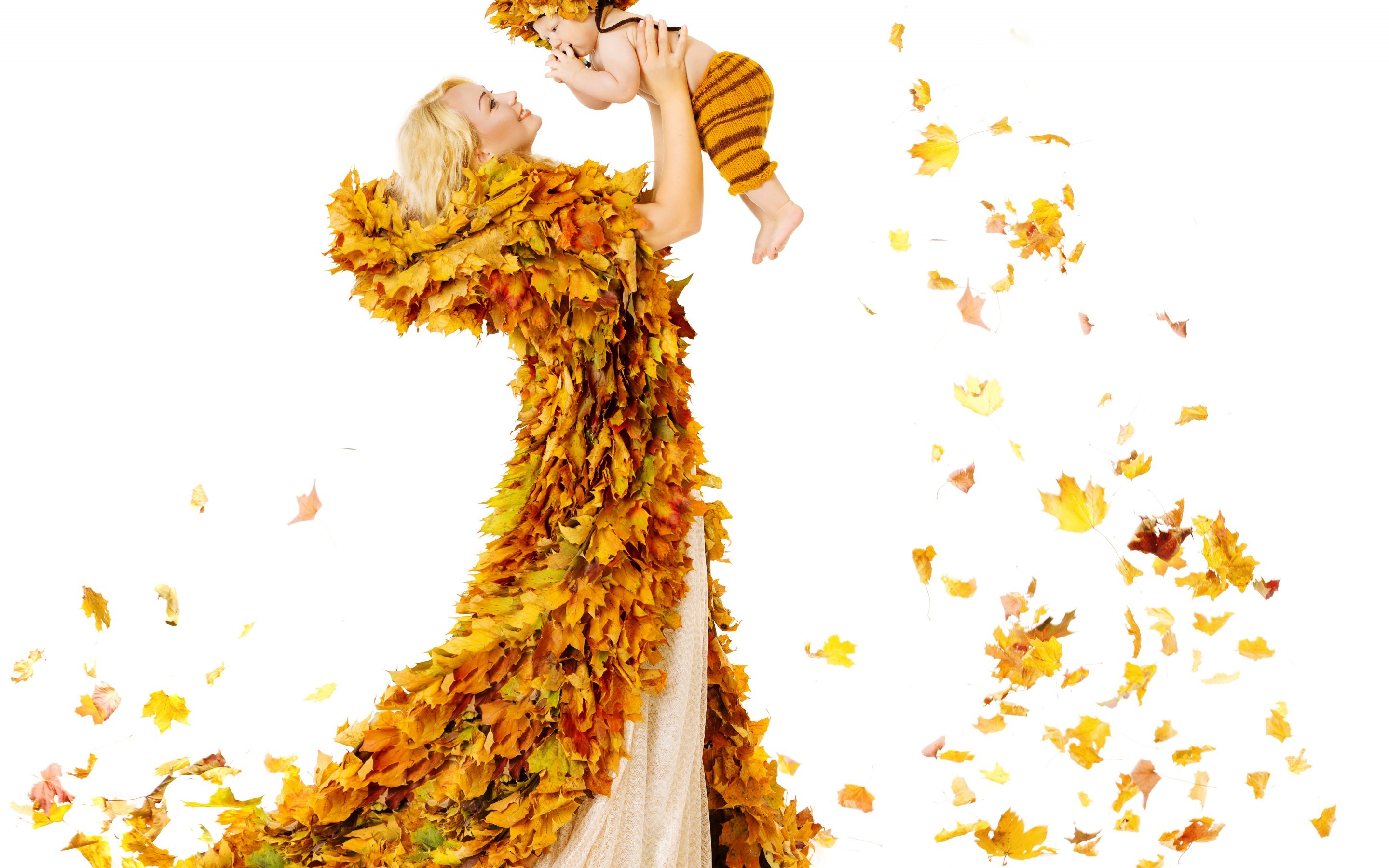 Edytor tapety: Kobieta, Dziecko, Liście
