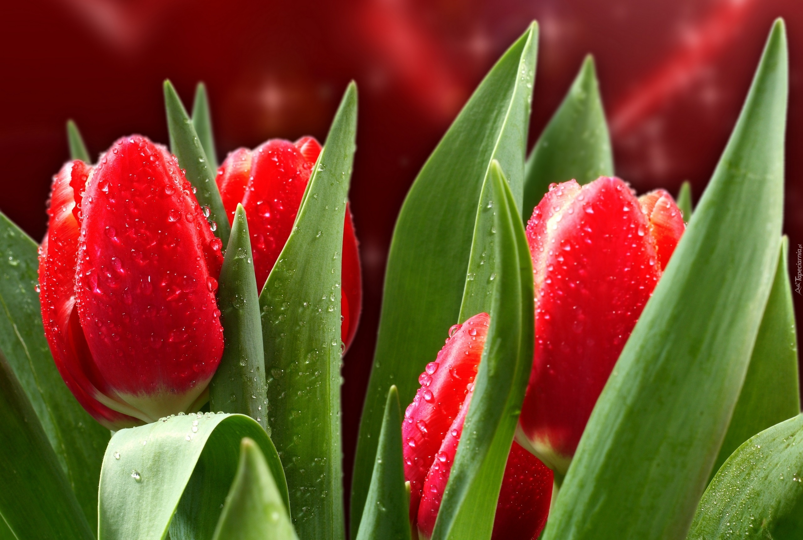 Edytor tapety: Czerwone, Tulipany, Krople, Wody