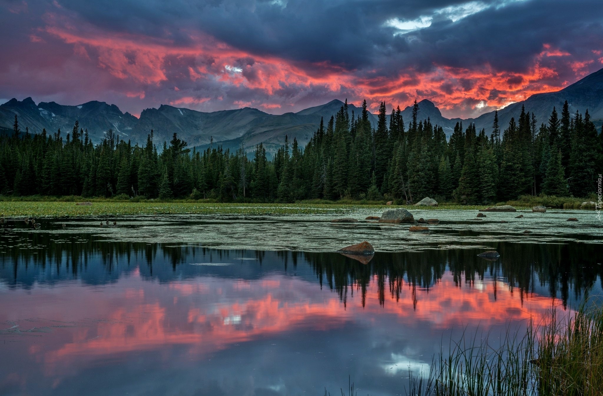 Edytor tapety: Rzeka, Góry, Drzewa, Niebo, Odbicie