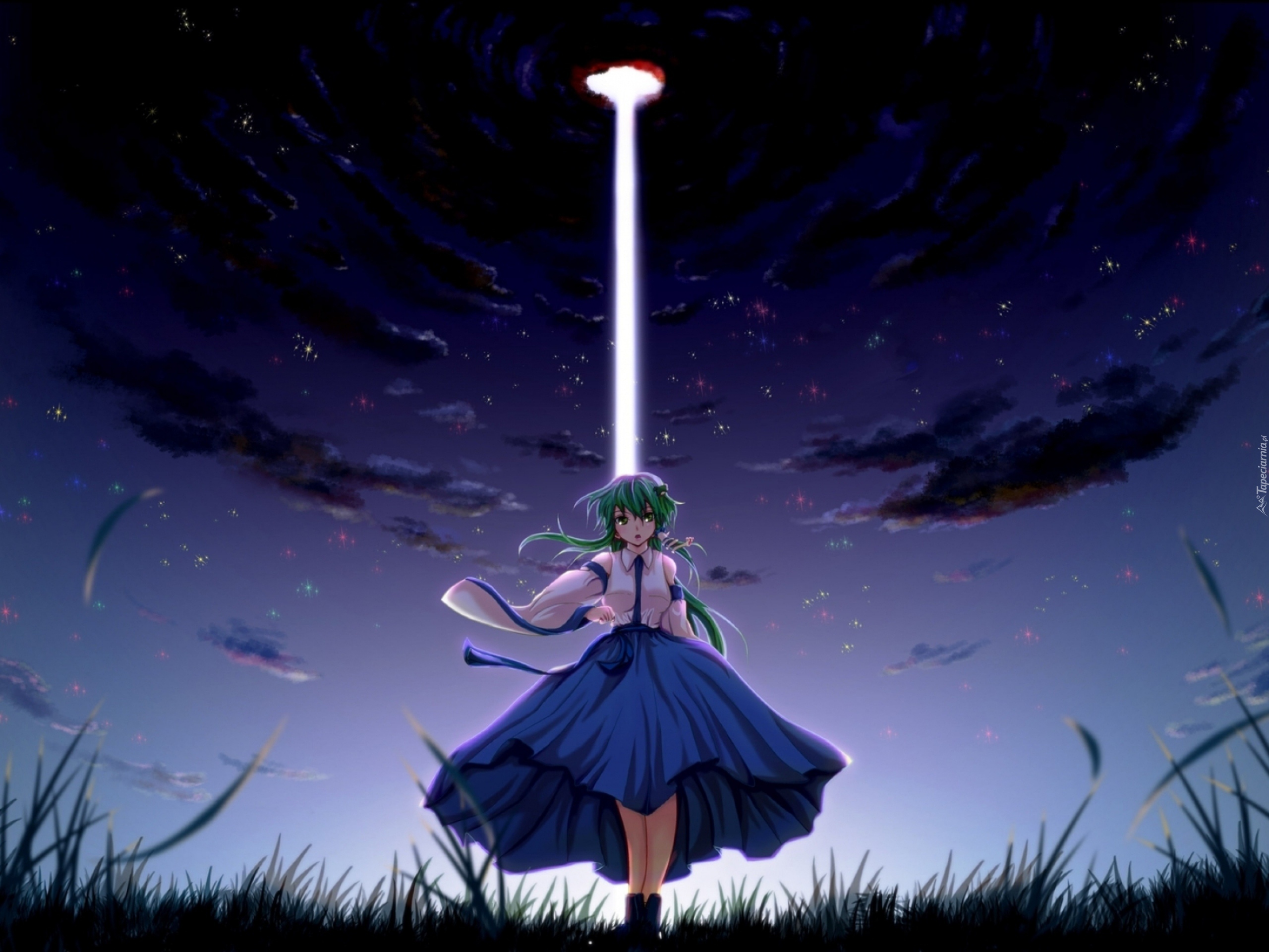 Edytor tapety: Dziewczyna, Trawa, Niebo, Chmury, Światło, Manga, Anime