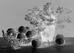 Edytor tapety: Kompozycja, Bukiet, Owoce, Kalina, Jabłka, Gliniany, Dzban, Wiklinowy, Koszyk