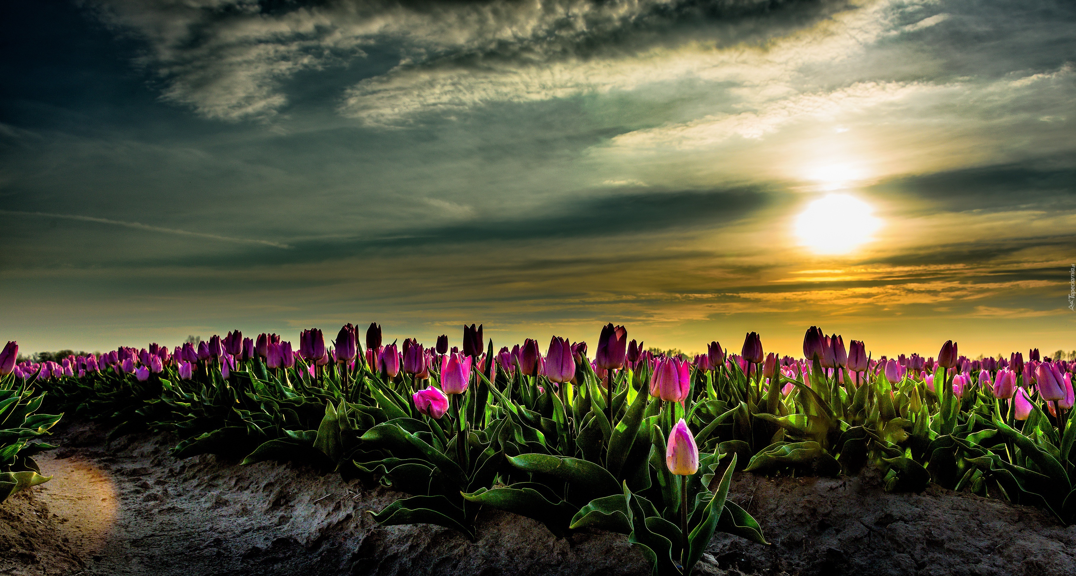 Edytor tapety: Plantacja, Tulipanów, Zachód, Słońca