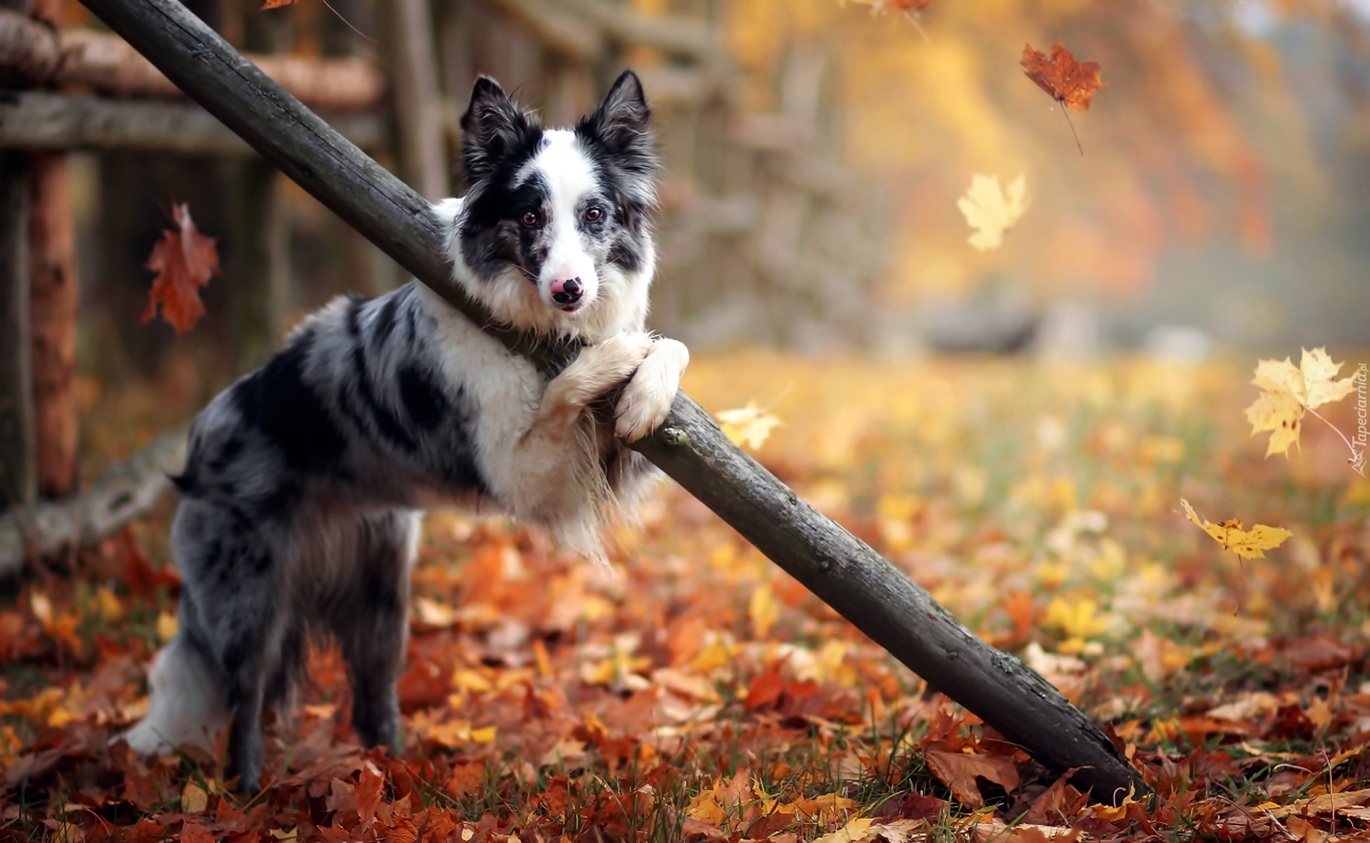 Edytor tapety: Pies, Border Collie, Ogrodzenie, Liście, Drzewa, Jesień