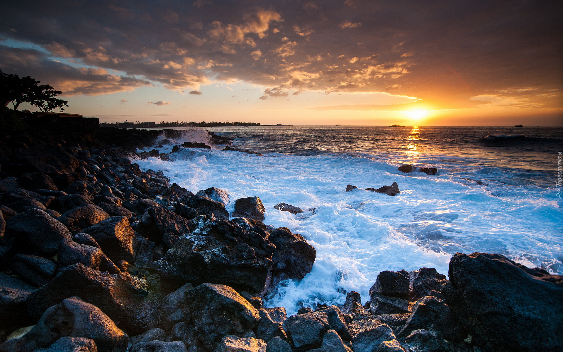 Edytor tapety: Morze, Wybrzeże, Zachód Słońca