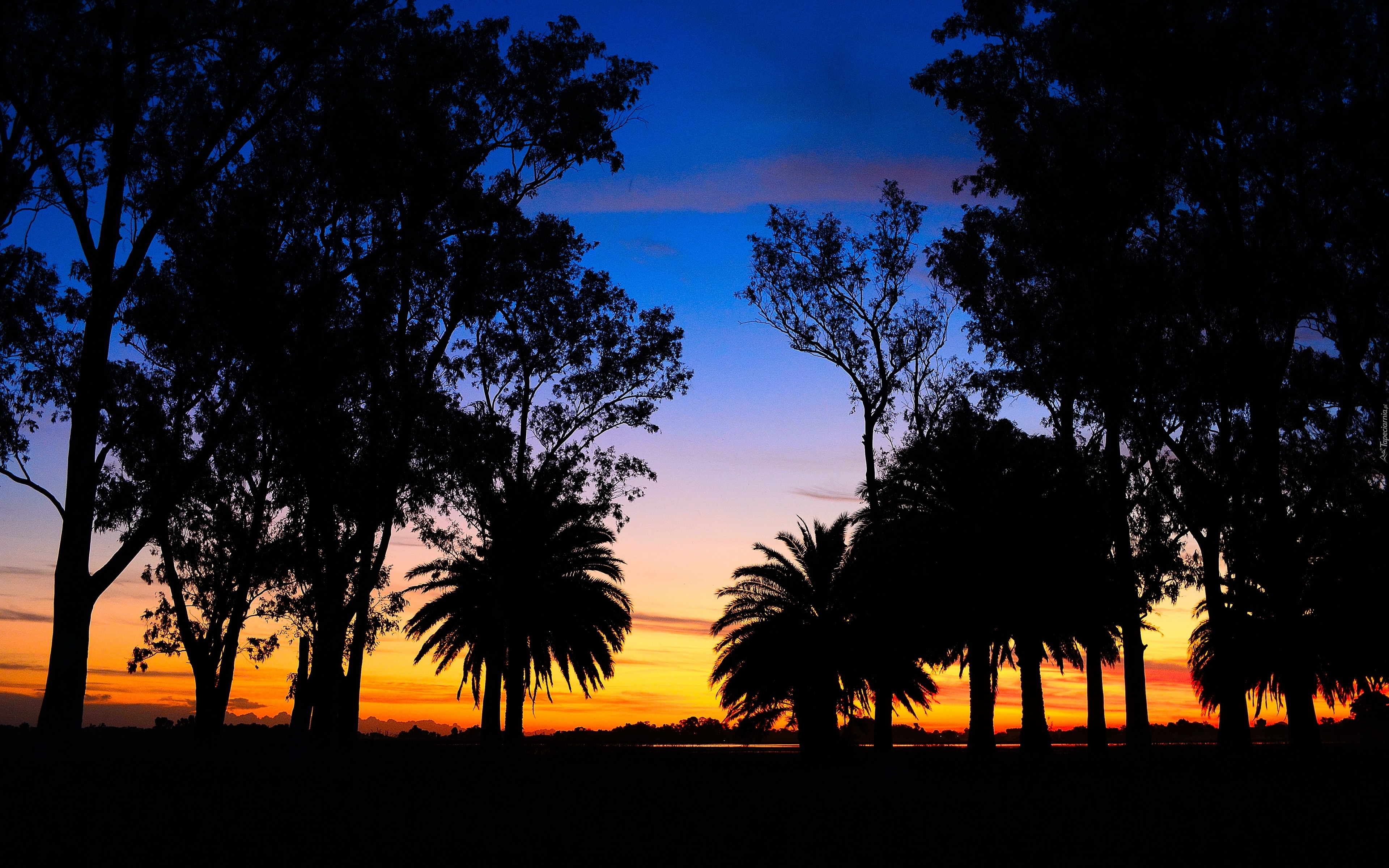 Edytor tapety: Palmy, Drzewa, Zachód słońca