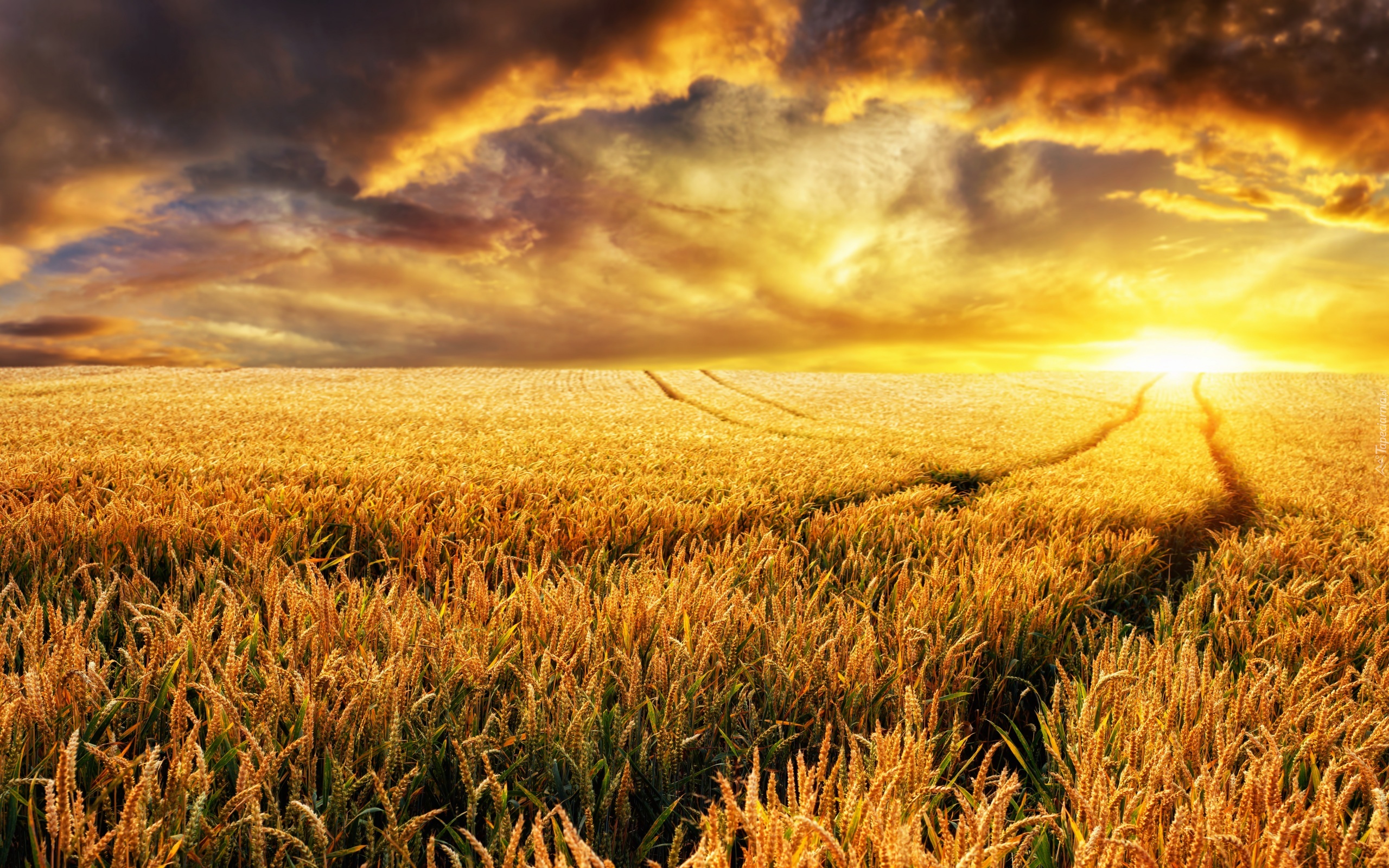 Edytor tapety: Pole, Zachód, Słońca, Zboże