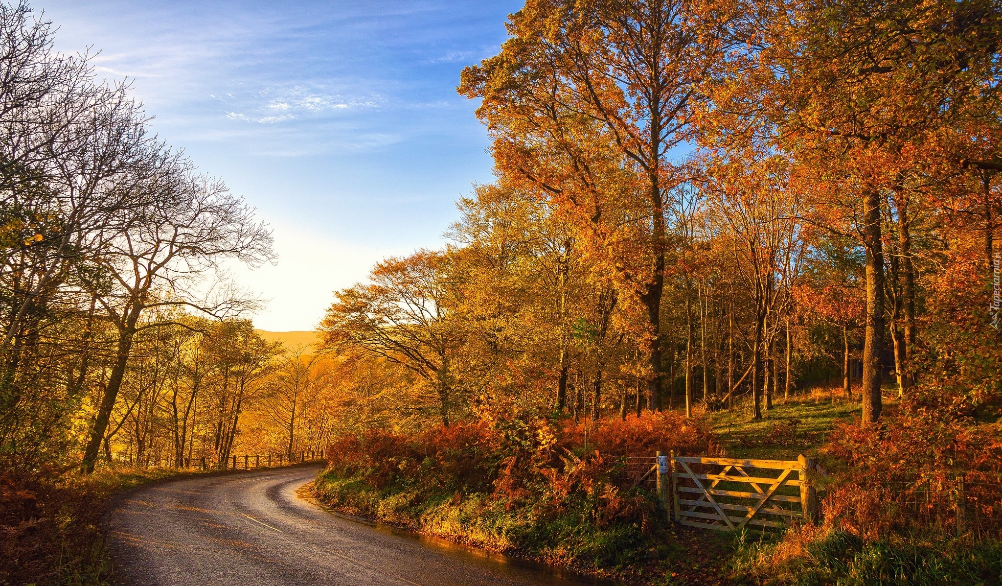 Edytor tapety: Jesień, Drzewa, Droga, Płotek