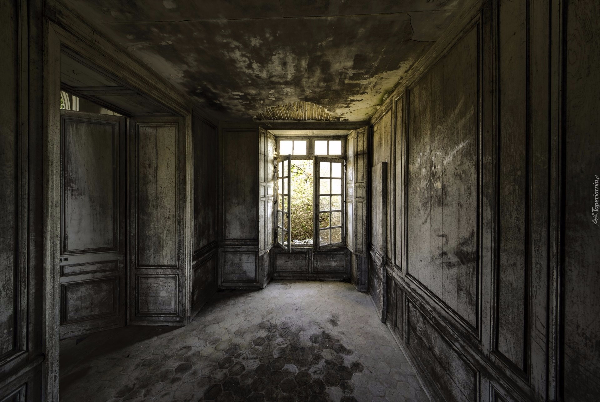 Edytor tapety: Zaniedbany, Stary, Zniszczony, Korytarz, Okna, Drzwi