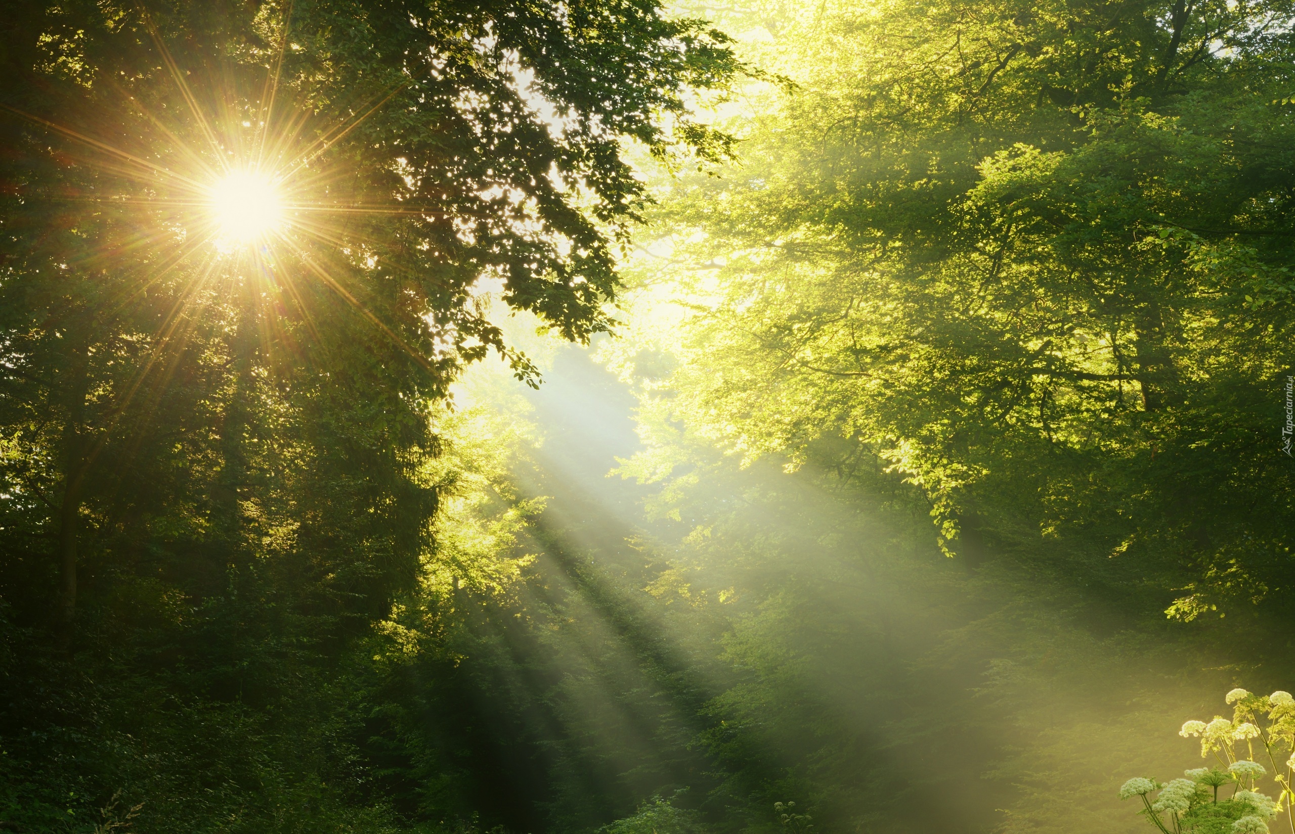 Edytor tapety: Las, Promienie, Słońca, Drzewa