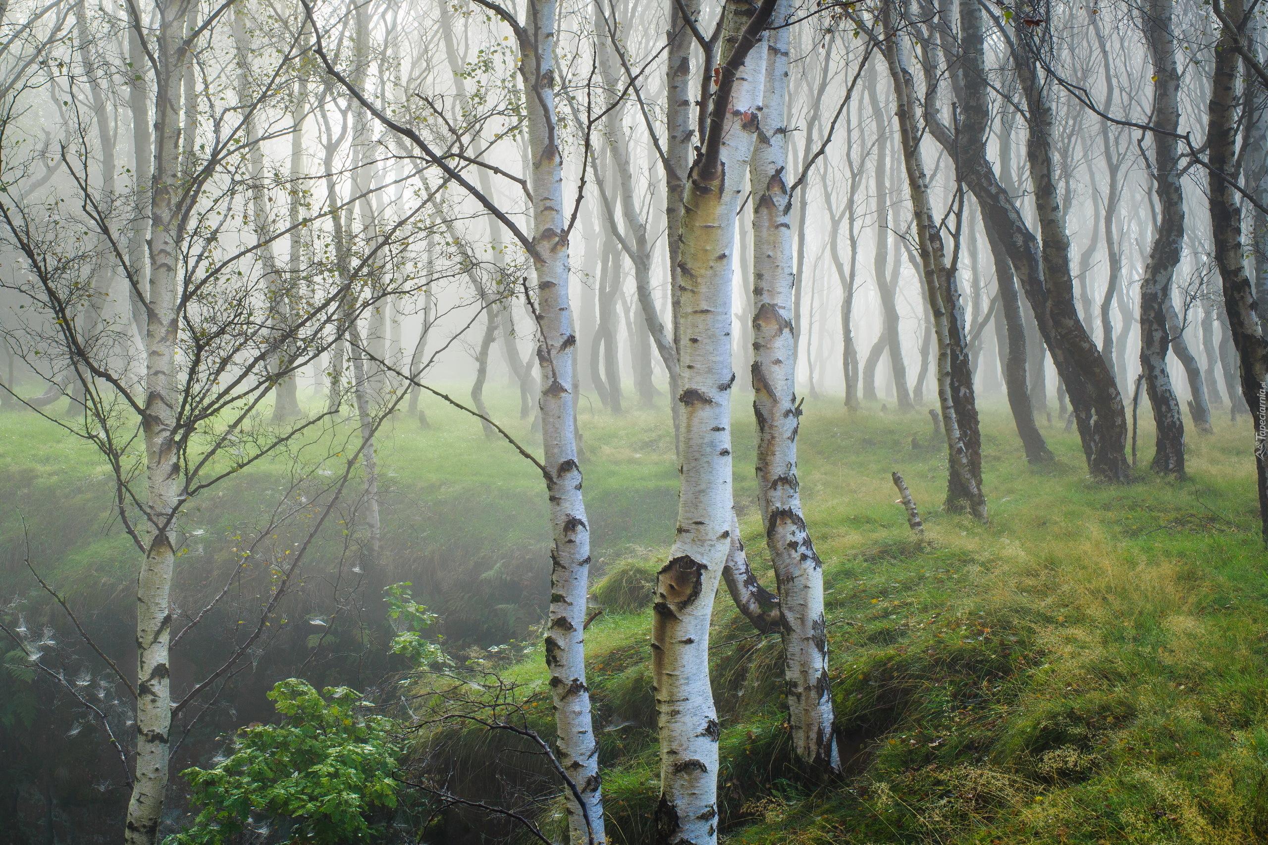 Edytor tapety: Brzozowy, Las, Mgła, Brzozy