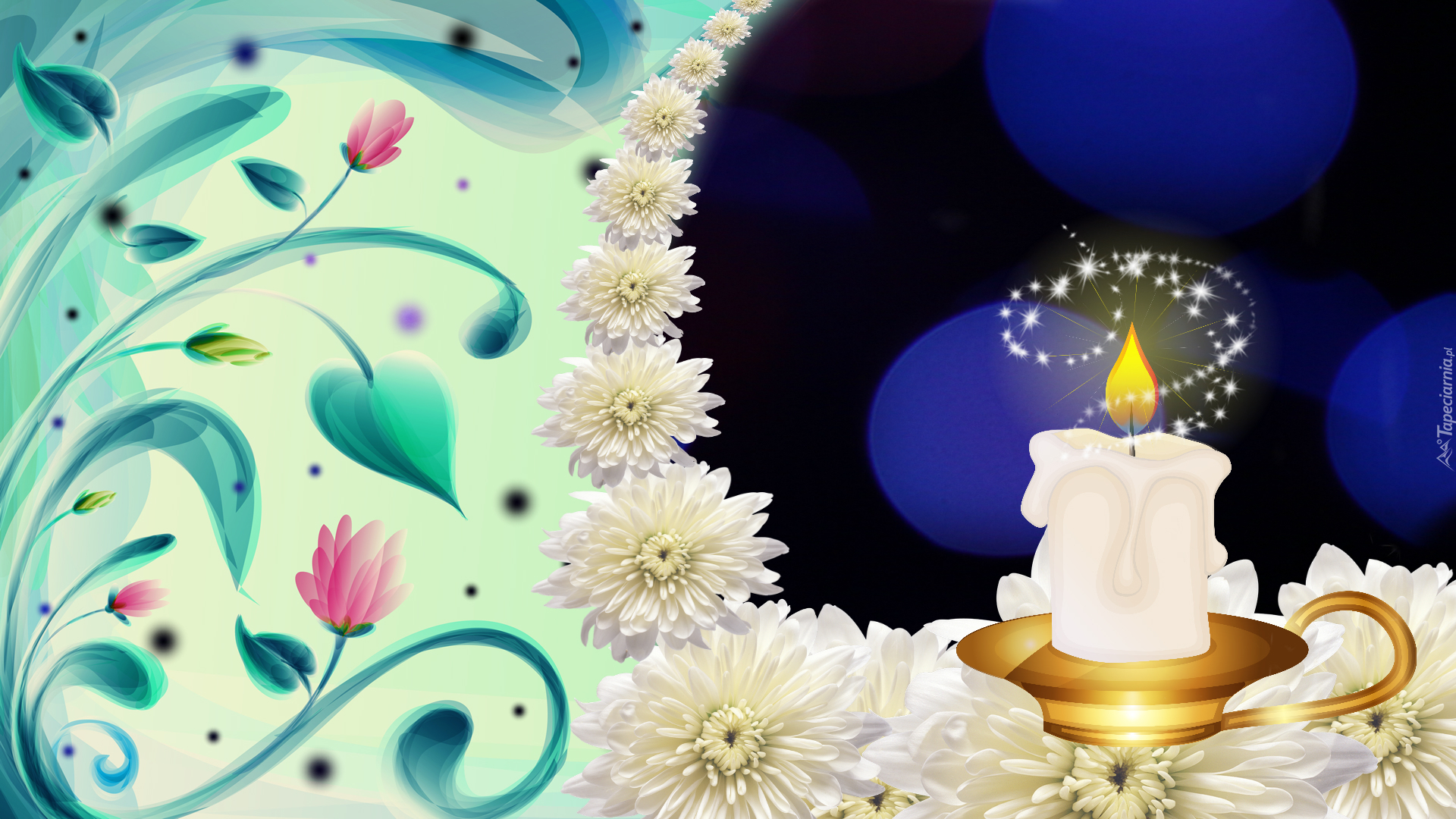 Edytor tapety: Świeca, Chryzantemy, Ornament, Grafika, Zaduszki