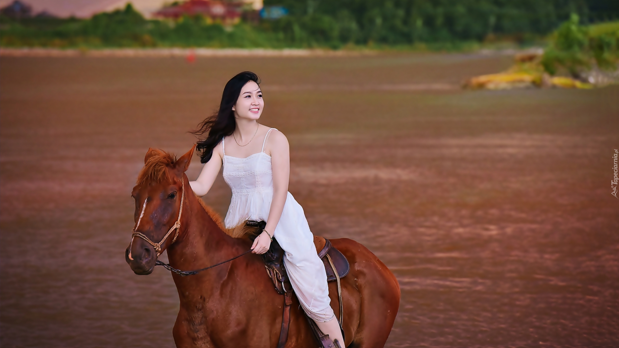 Edytor tapety: Kobieta, Brunetka, Koń