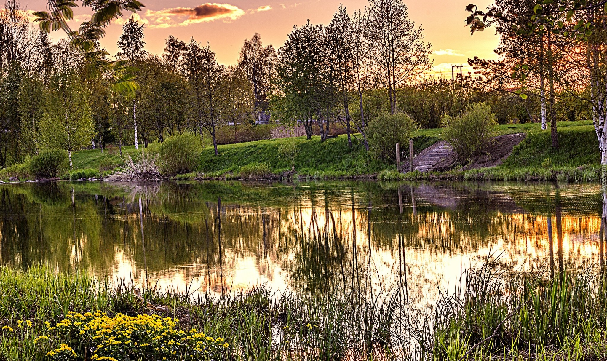 Edytor tapety: Park, Staw, Drzewa, Schody, Rośliny, Odbicie
