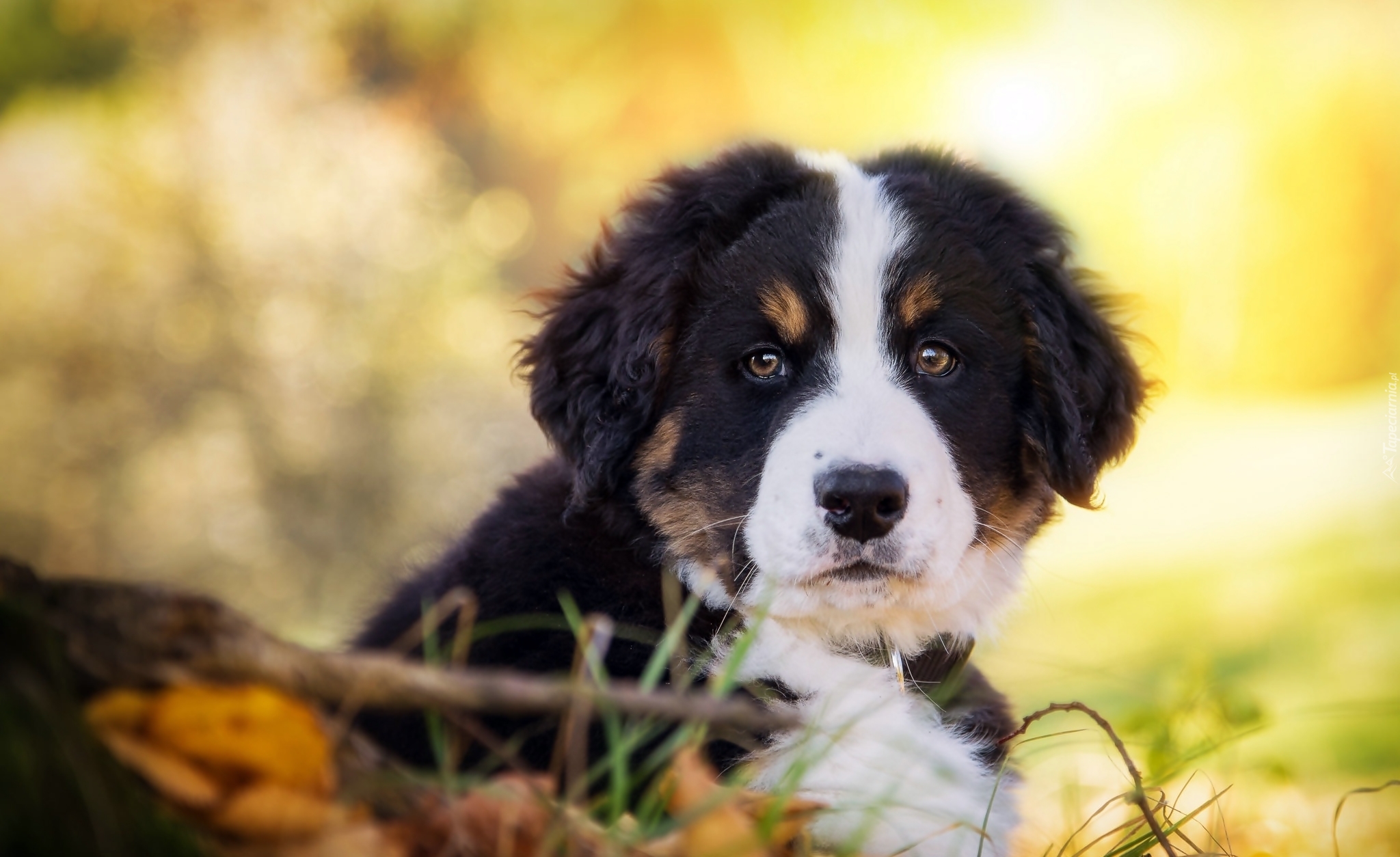 Edytor tapety: Słodki, Szczeniaczek, Berneński, Pies, Pasterski, Łąka, Jesień