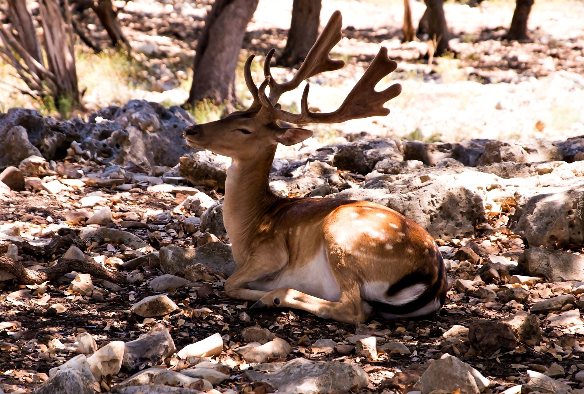 Edytor tapety: Leżący, Jeleń, Kamienie