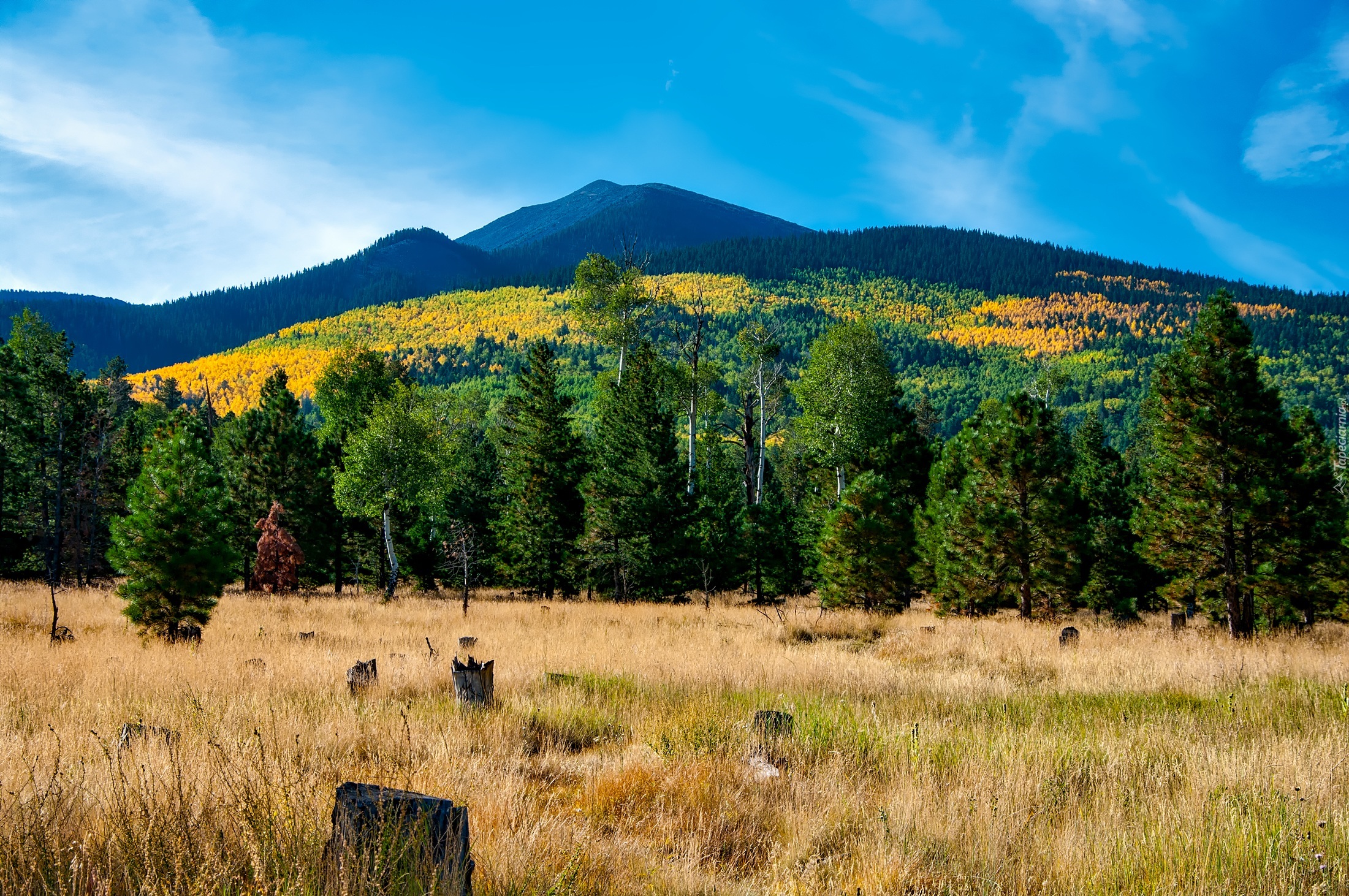 Edytor tapety: Góry, Las, Drzewa, Łąka, Trawa