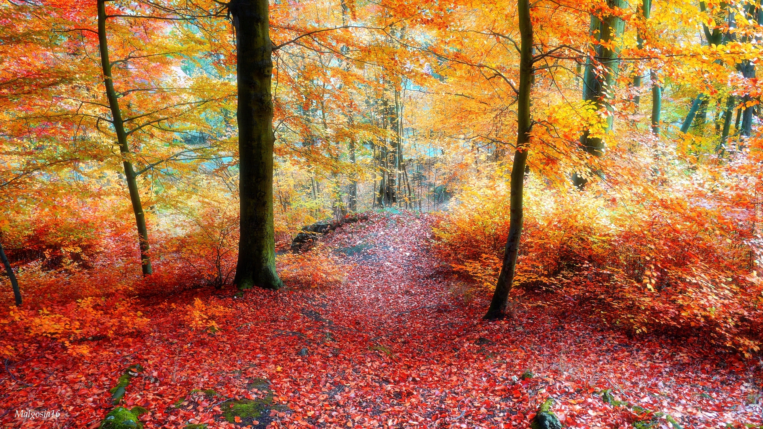 Edytor tapety: Ścieżka w lesie przysypana liśćmi