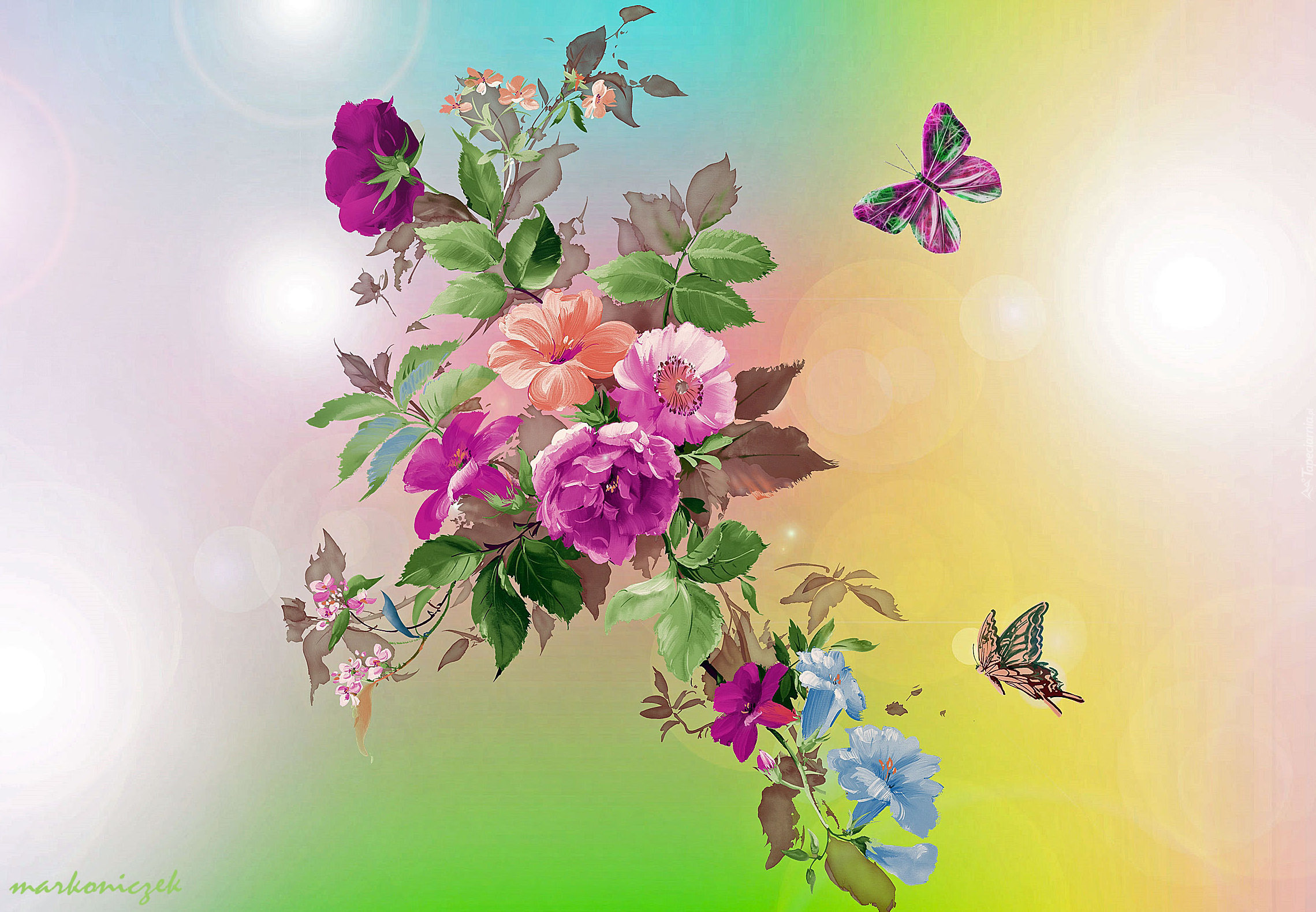 Edytor tapety: Grafika, 2D, Kwiaty, Motylki