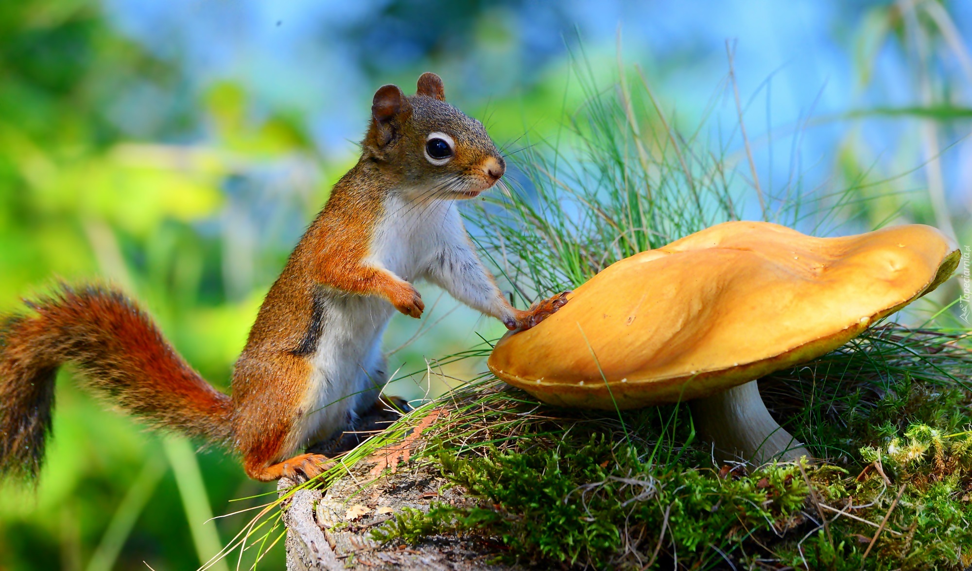 Edytor tapety: Wiewiórka, Grzyb, Mech