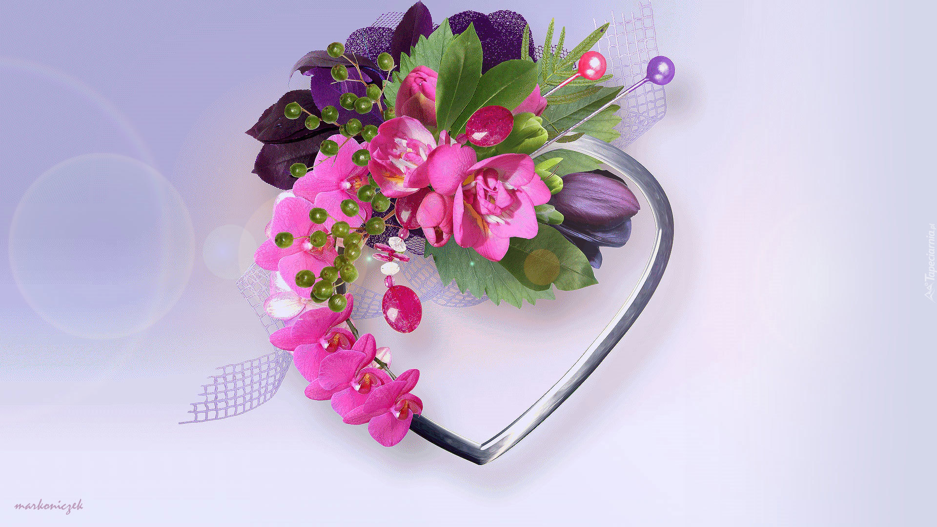 Edytor tapety: Grafika, 2D, Serce, Kwiaty